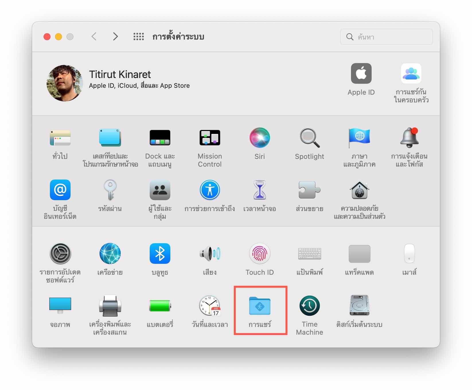 บน Mac ให้ไปที่การตั้งค่า > การแชร์