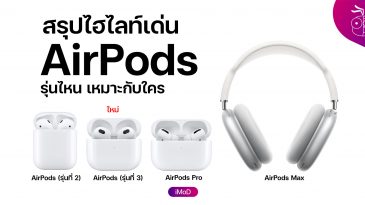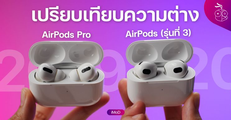 ก่อนอื่นเรามาดูความต่างของ AirPods (รุ่นที่ 3) กับ AirPods Pro ก่อนว่าทั้ง 2 รุ่นมีจุดแตกต่างกันจุดไหน อย่างไรบ้าง
