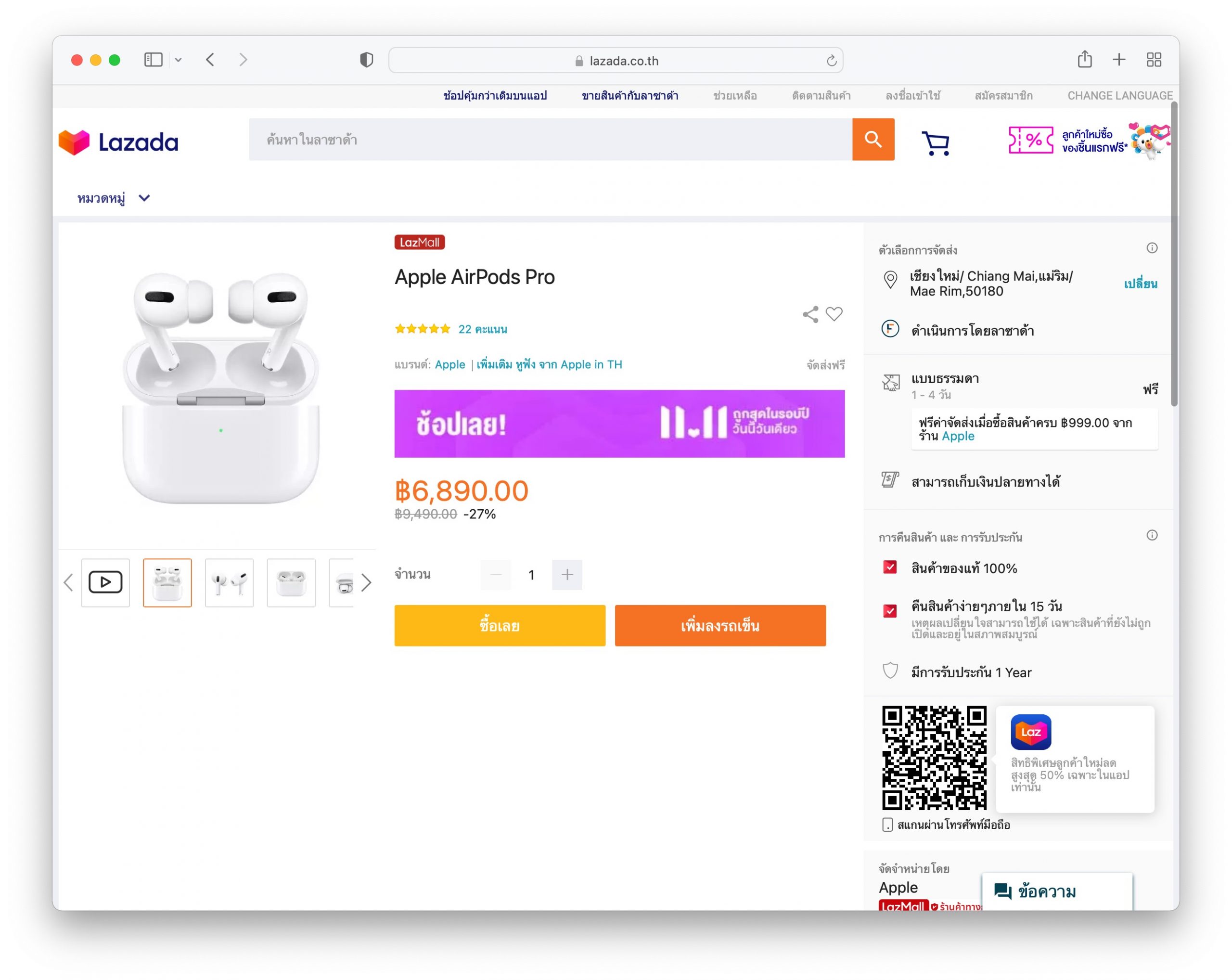 ราคา AirPods Pro ที่ LAZADA 11.11.2021