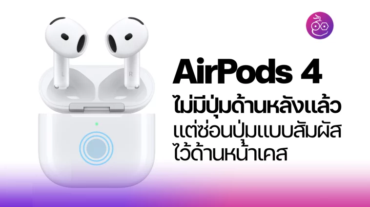 AirPods 4 ไม่มีปุ่มจับคู่หรือรีเซ็ตด้านหลังเคสแล้ว แต่ใช้ปุ่มสัมผัส Capacitive ซ่อนอยู่ด้านหน้า