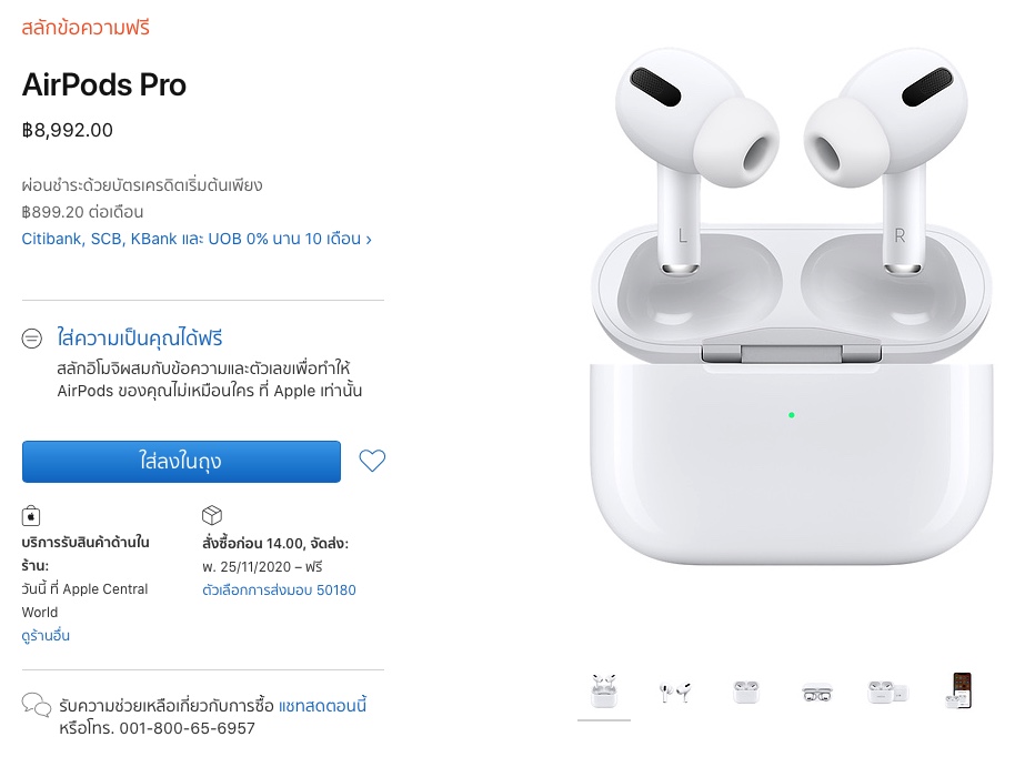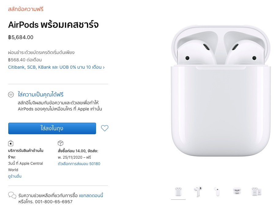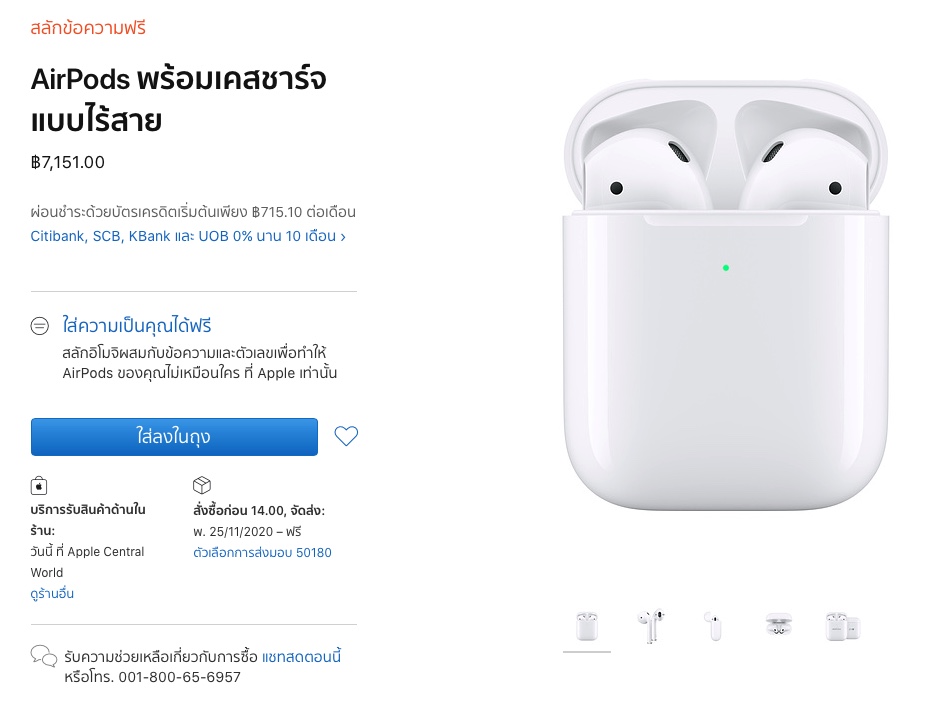 22 พ.ย. 63, Apple ปรับลดราคา AirPods ทุกรุ่นอย่าง AirPods, AirPods เคสชาร์จไร้สาย, AirPods Pro ที่ Apple Store ออนไลน์ไทย, หน้าร้าน Apple Store มีผลทันที