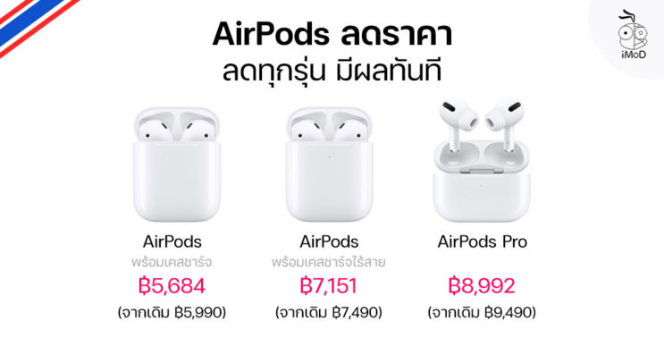 AirPods พร้อมเคสชาร์จ เหลือ 5,684 บาท (จากเดิม 5,990 บาท)