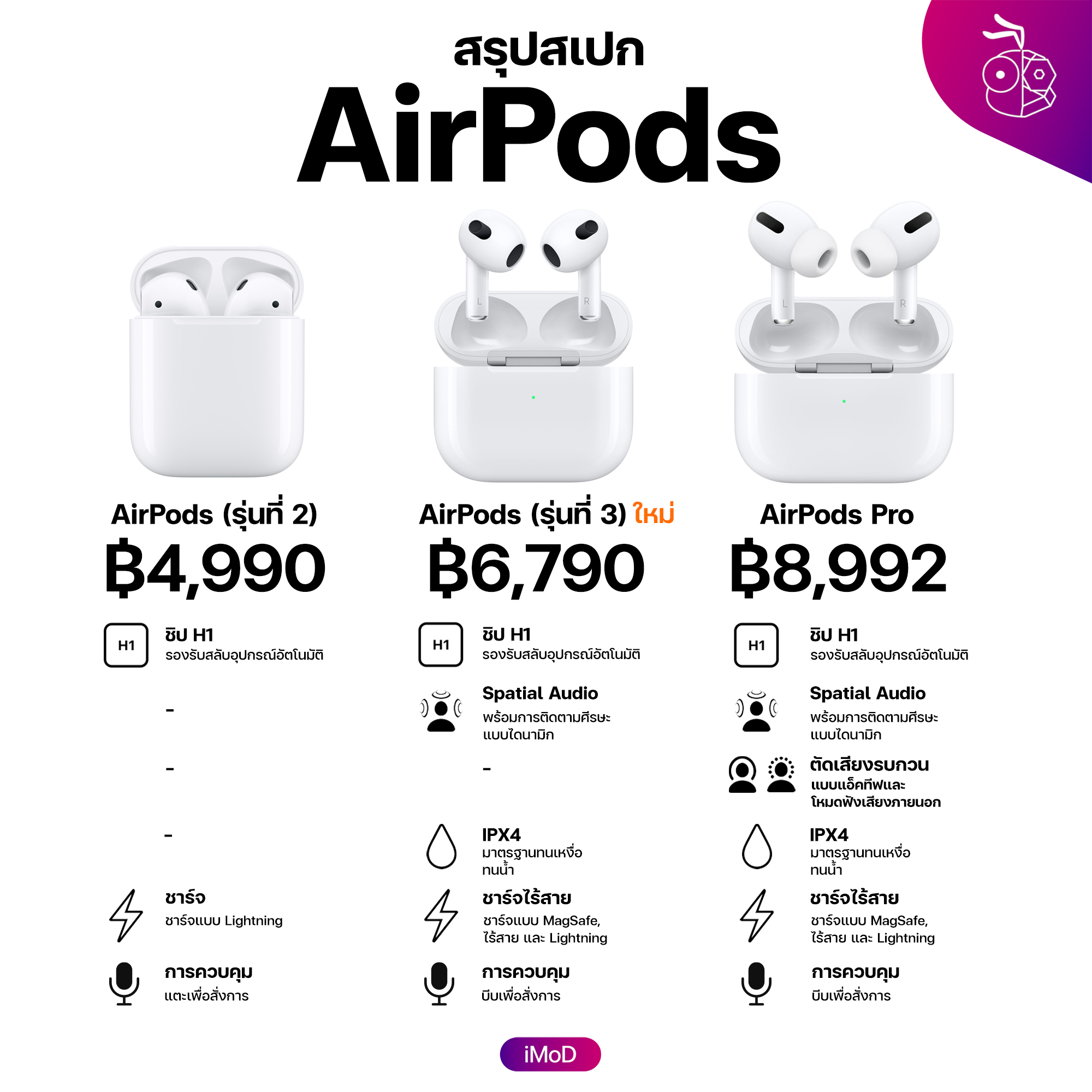 เปรียบเทียบสเปก AirPods แต่ละรุ่น
