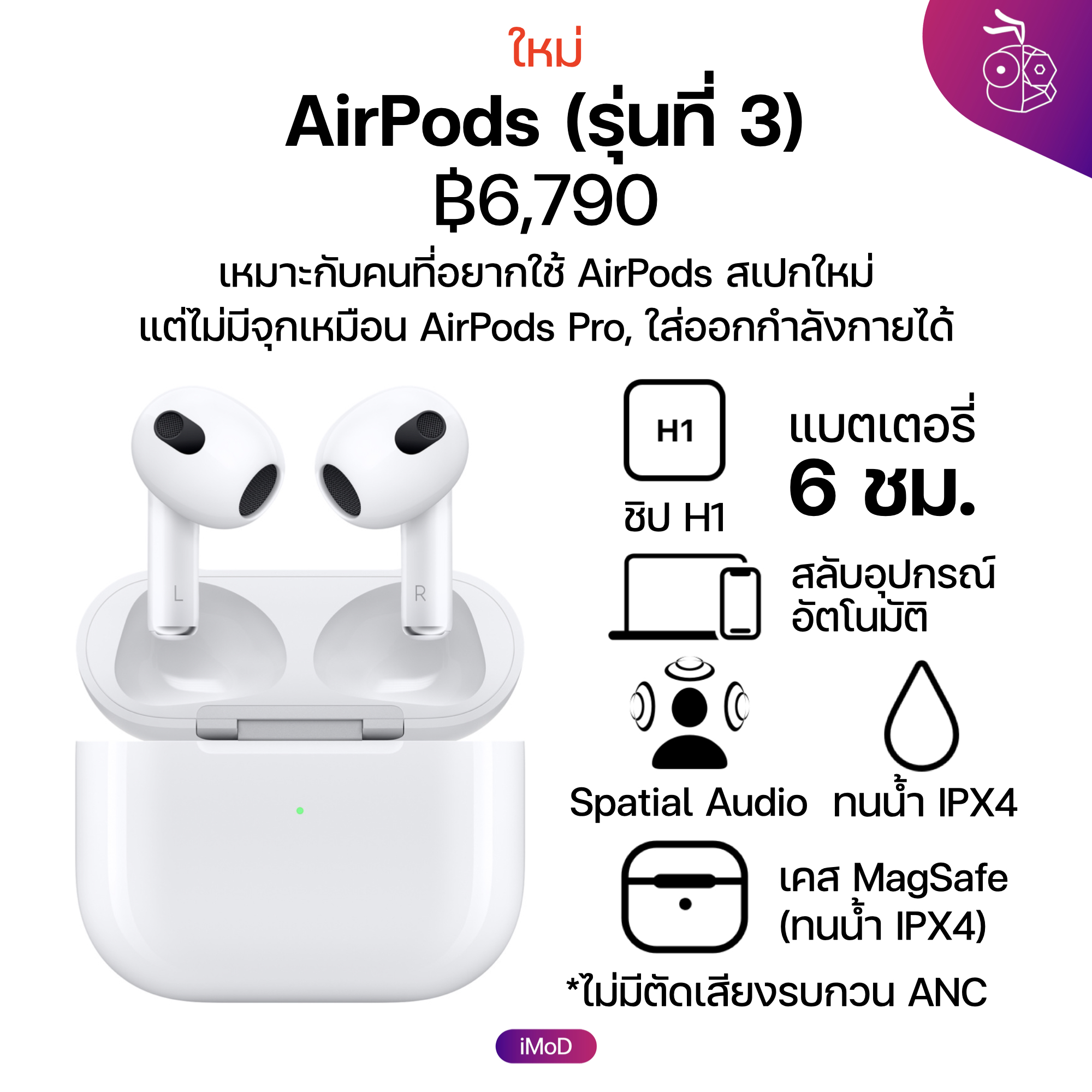 AirPods (รุ่นที่ 3) ไม่มีฟีเจอร์ตัดเสียงรบกวน ANC และโหมดฟังเสียงภายนอกเหมือน AirPods Pro