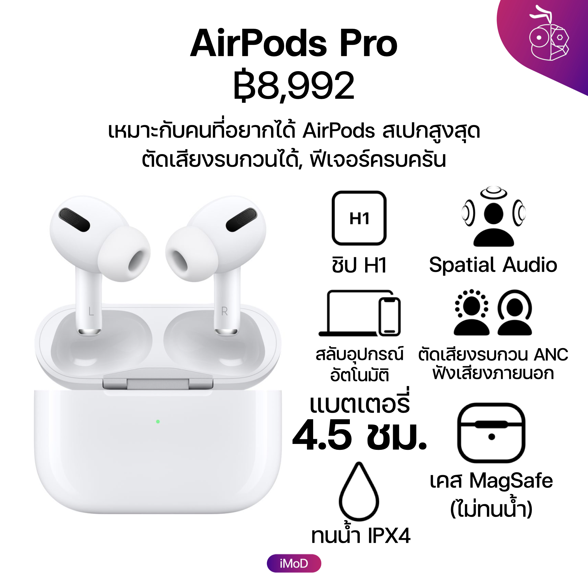 - เคสชาร์จรองรับ MagSafe (IPX4)