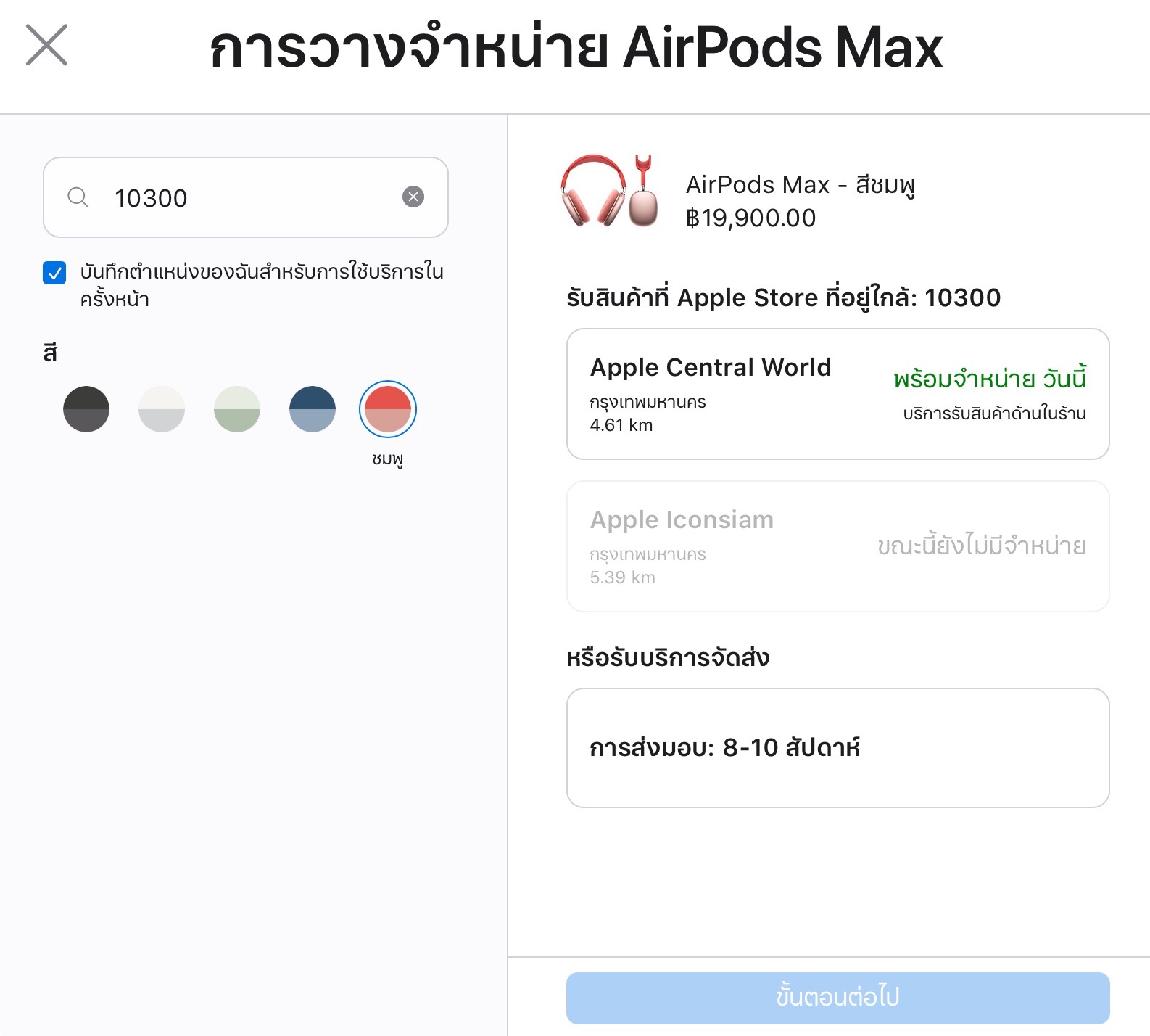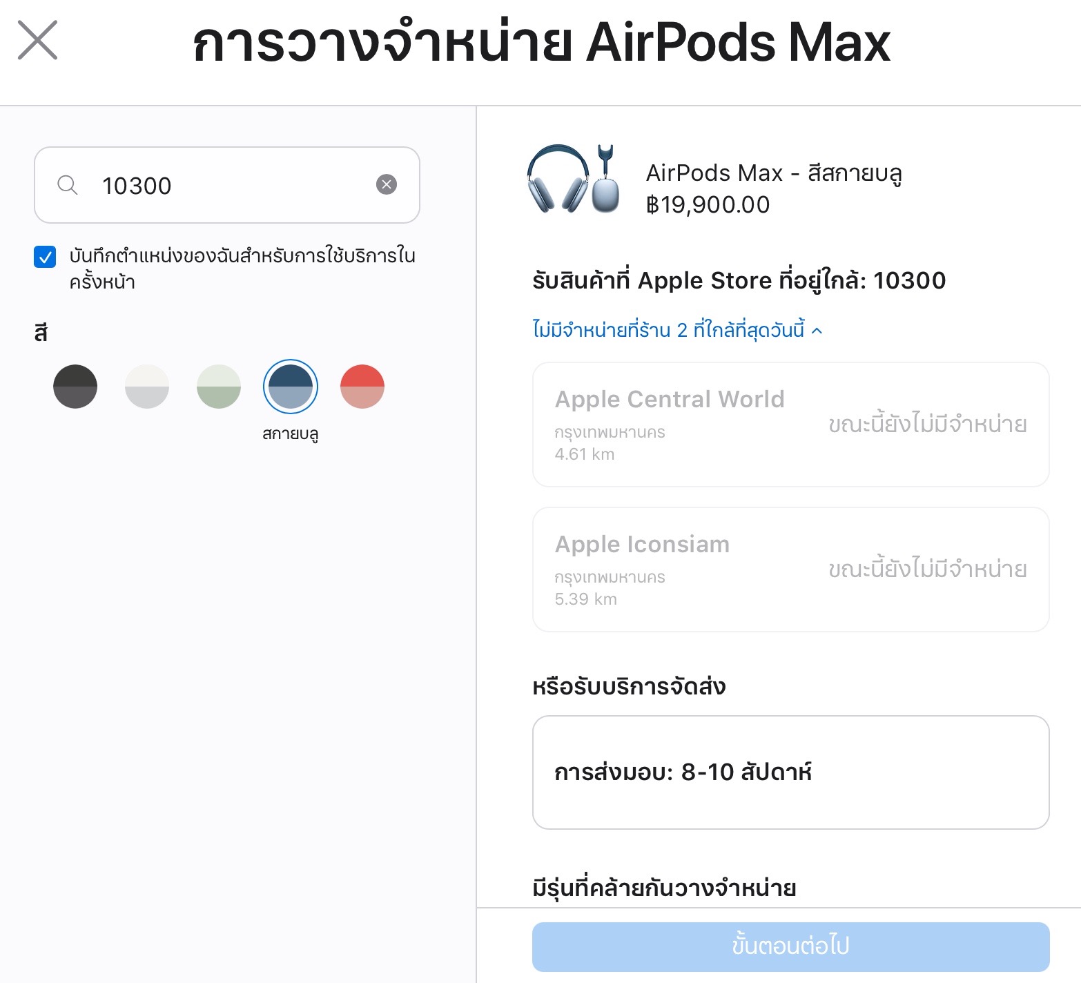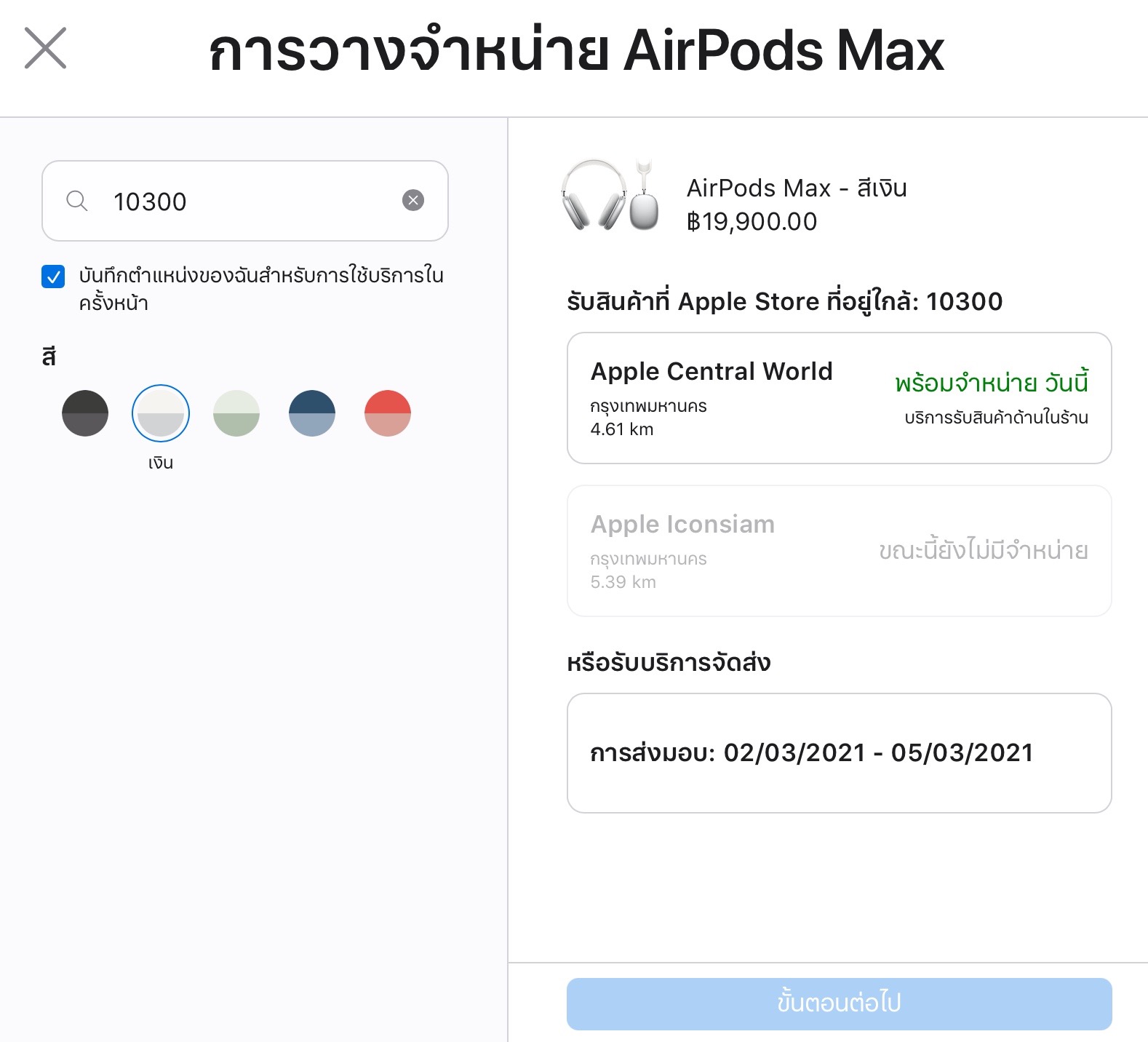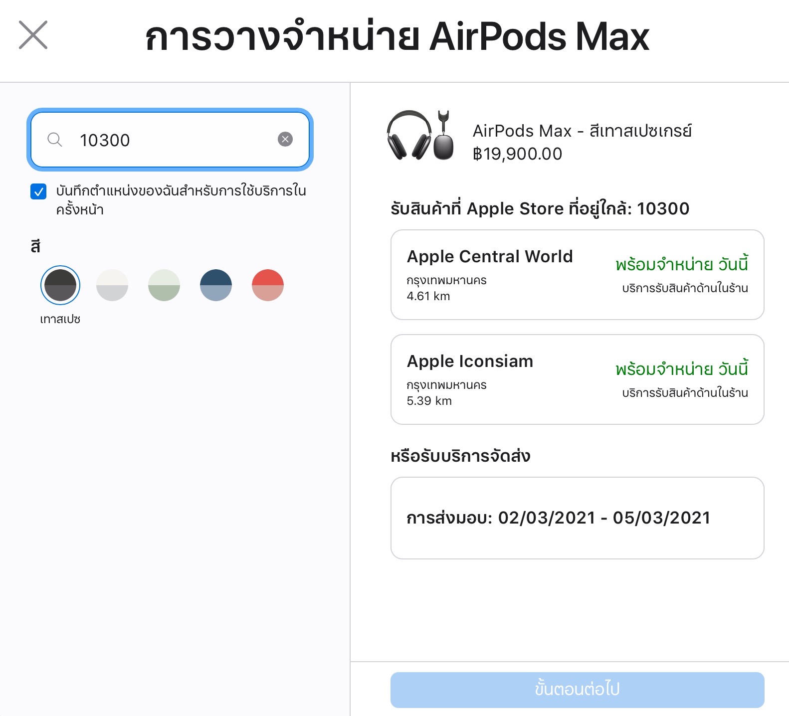 Apple เปิดให้กดซื้อ AirPods Max แล้วไปรับที่ Apple Central World, Apple Iconsiam ได้แล้ว โดยบางสีของหมด ไม่มีจำหน่าย