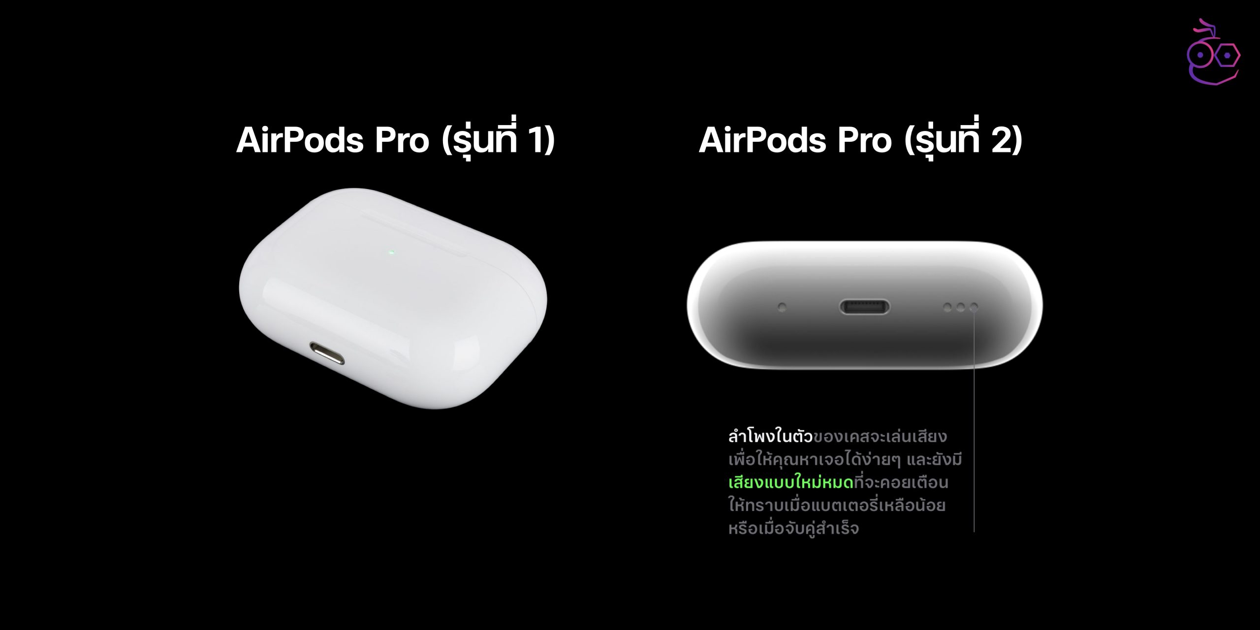 ก่อนอื่นเรามาดูความต่างของ AirPods Pro (รุ่นที่ 2) กับ AirPods Pro (รุ่นที่ 1) ก่อนว่าทั้ง 2 รุ่นมีจุดไหนแตกต่างกันอย่างไรบ้าง