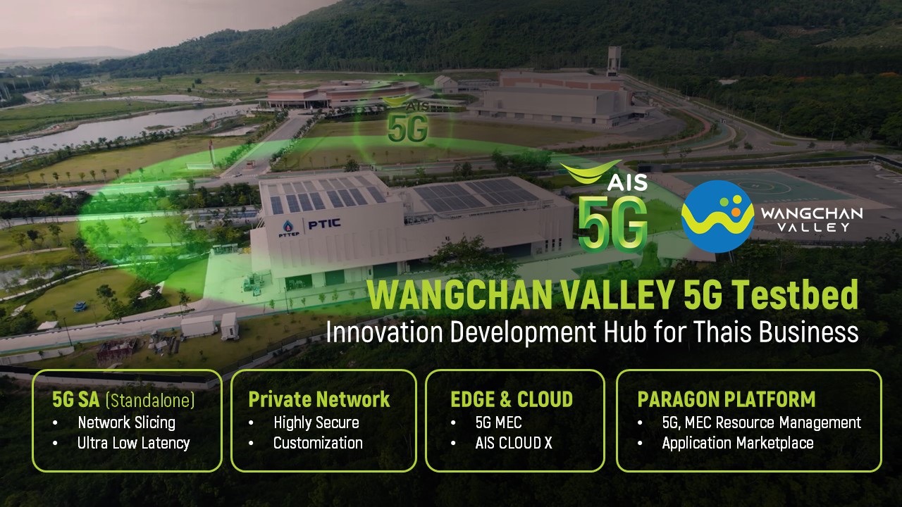 ในพื้นที่โครงการวังจันทร์วัลเลย์และ EECi ให้เป็นศูนย์กลางการพัฒนาและทดสอบโซลูชัน โดยมุ่งเน้นการขยายผลเพื่อการใช้งานจริงมาอย่างต่อเนื่อง ทั้งนี้ ทีมวิศวกรของ AIS ได้จัดเตรียมโครงสร้างพื้นฐานไว้อย่างสมบูรณ์ อาทิ การออกแบบ Network Architecture หรือ สถาปัตยกรรมโครงข่าย 5G SA (Standalone) บนคลื่น 2600 MHz โดยใช้ศักยภาพของเทคโนโลยี Autonomous Network