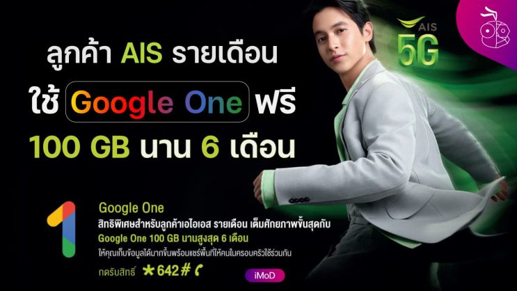 ลูกค้า AIS สมัครรับสิทธิ์ใช้พื้นที่เก็บข้อมูลใน Google One ฟรีนาน 6 เดือน สูงสุด 100 GB สมัครรับสิทธิ์เพียงกด *642# แล้วโทรออก