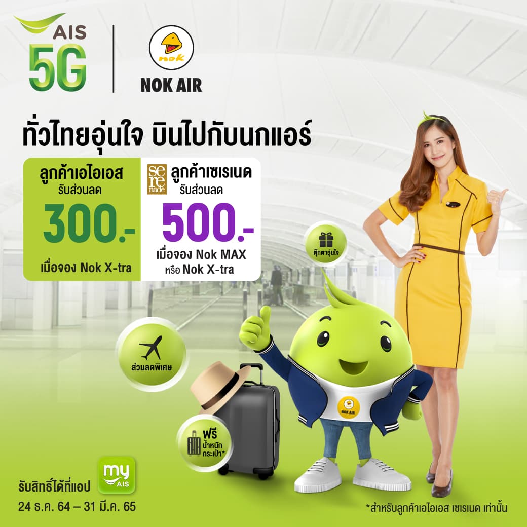 AIS 5G x NOK AIR จัดแคมเปญ “ทั่วไทยอุ่นใจ” ลูก AIS บินกับ NOK Air รับส่วนลดค่าตั๋วเดินทางสูงสุด 500 บาท