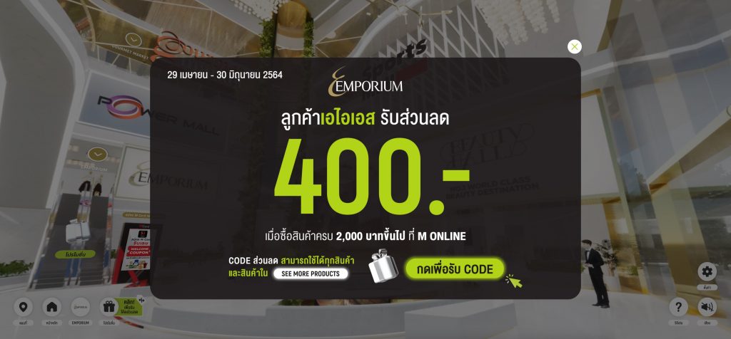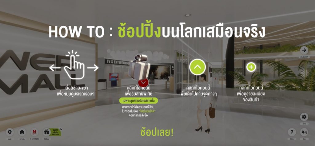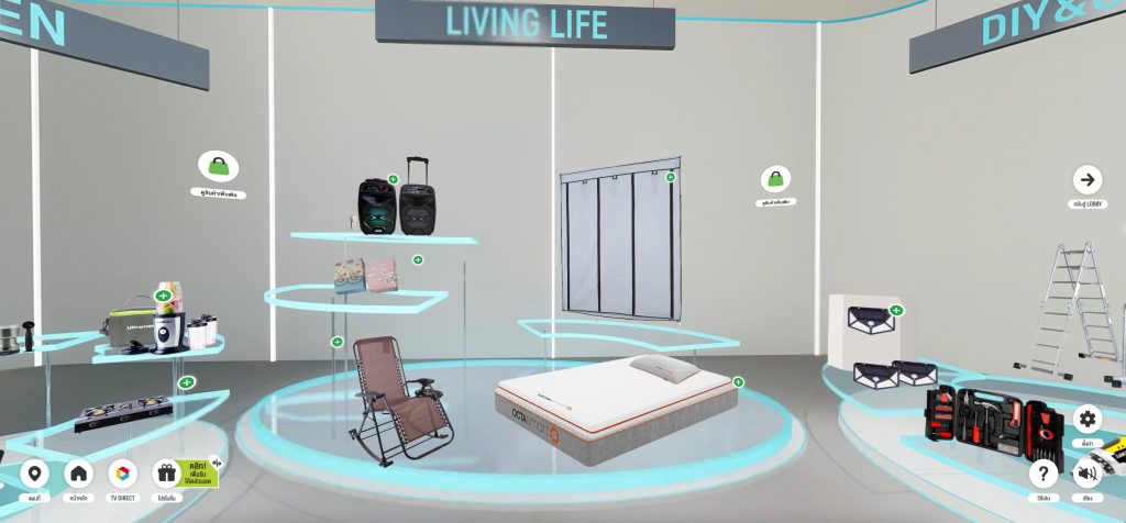 แถมยังรองรับการใช้แว่น VR ที่ช่วยให้ลูกค้าสามารถช้อปปิ้ง เข้าชมสินค้าภายในร้านค้าออนไลน์แบบแทบจะจับต้องได้ทั่วทั้งห้าง เหมาะกับยุค New Normal ในปัจจุบัน ลูกค้าสามารถเลือกซื้อสินค้าได้อย่างปลอดภัยและสะดวก สินค้าถูกจัดส่งถึงบ้าน