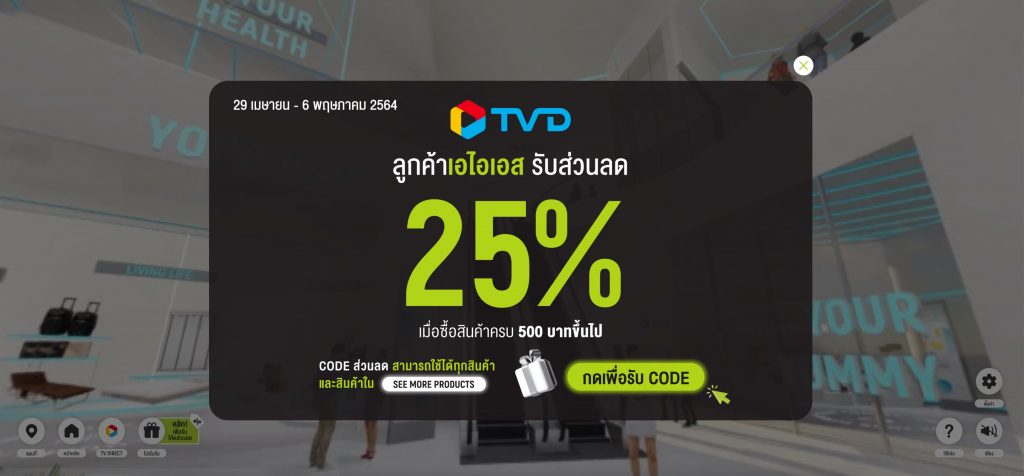 TVD หรือ TV Direct ได้รวมสินค้าสุขภาพ ของใช้ในบ้าน แฟชั่น และอาหารเสริมมากมายมาไว้ในห้างแบบเสมือนจริง ให้ลูกค้าที่สนใจมาเลือกซื้อกันได้ง่าย ๆ