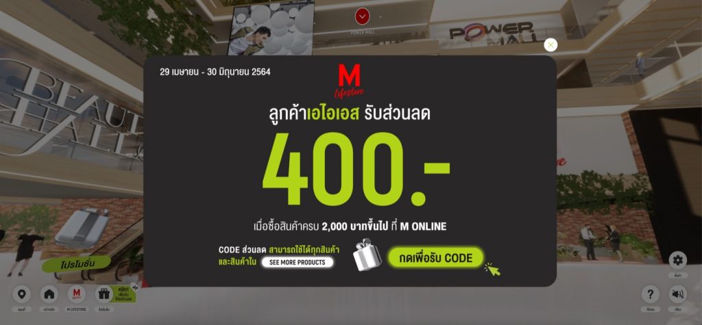 ลูกค้า AIS จะได้รับส่วนลดสูงสุด 400 บาท เมื่อช้อปครบ 2,000 บาทขึ้นไป โดยซื้อที่ M Online