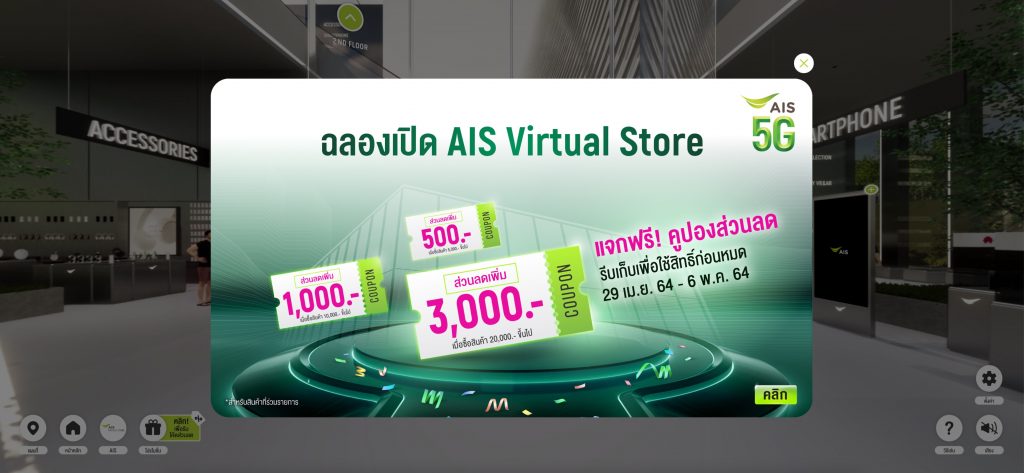 ลูกค้า AIS จะได้รับส่วนลดสูงสุด 3,000 บาท เมื่อช้อปครบ 20,000 บาทขึ้นไป โดยซื้อผ่าน AIS Virtual Store