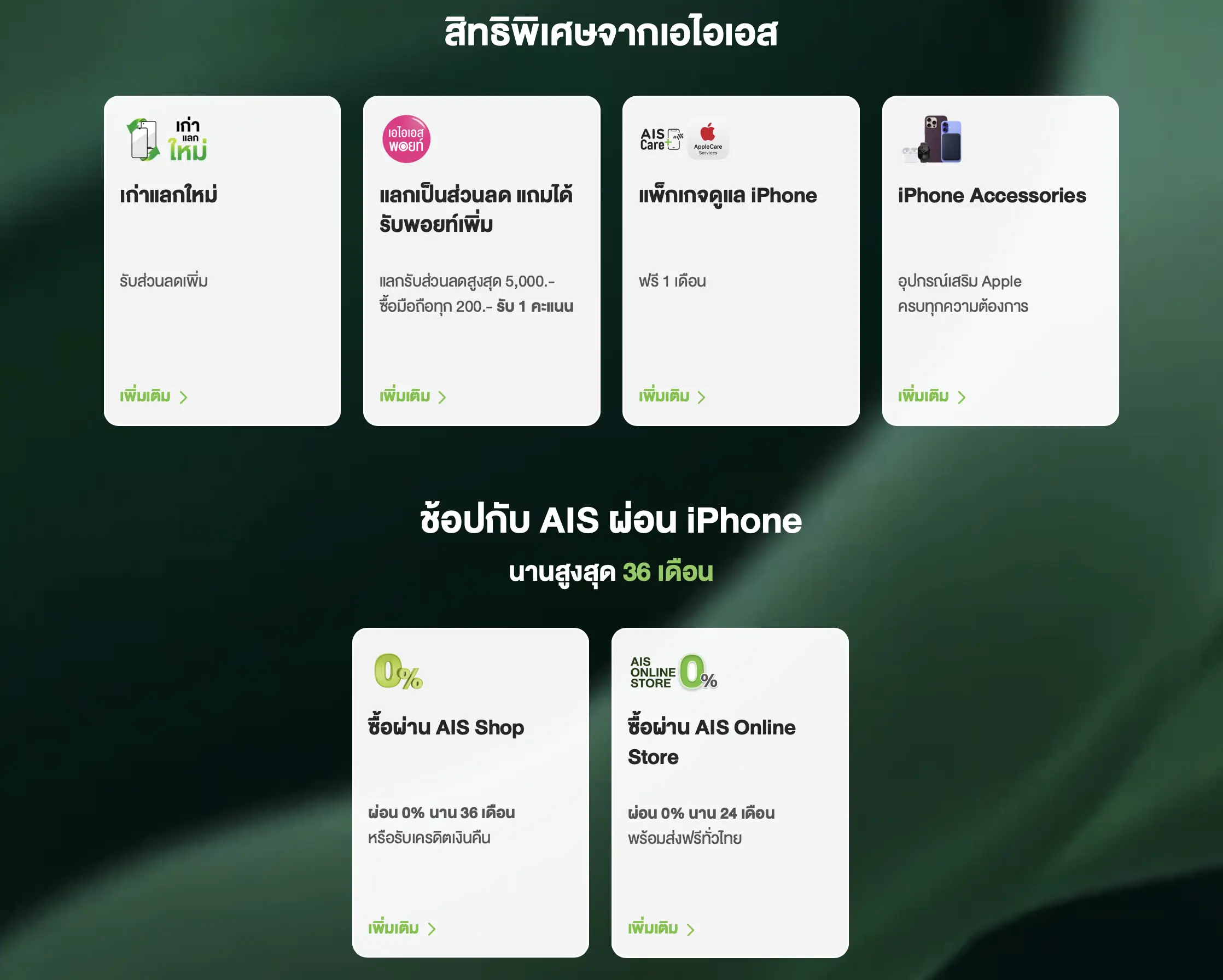 - เก่าแลกใหม่: แลกเครื่องเก่าเพื่อรับส่วนลด iPhone เครื่องใหม่ได้ง่ายๆที่ AIS Shop ทุกสาขา