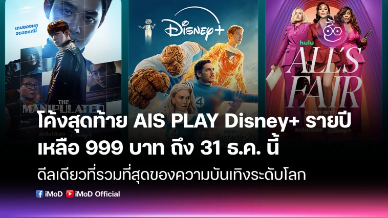 โค้งสุดท้าย AIS PLAY หั่นราคา Disney+ รายปี เหลือ 999 บาท ถึง 31 ธ.ค. นี้