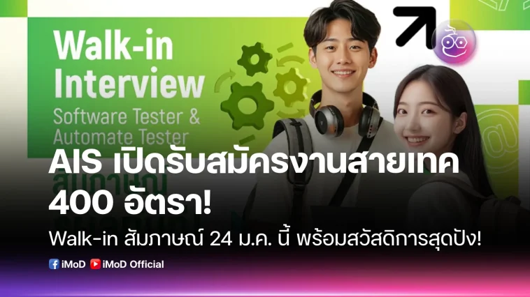 AIS เปิดรับสมัครงานสายเทค 400 อัตรา! Walk-in สัมภาษณ์ 24 ม.ค.นี้ พร้อมสวัสดิการสุดปัง