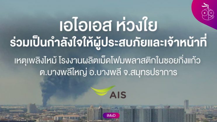 เอไอเอส ส่งความห่วงใยลูกค้าและประชาชน เหตุระเบิดโรงงานกิ่งแก้ว