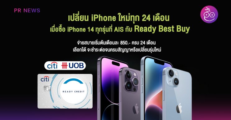 เป็นเจ้าของ iPhone 14 จ่ายเริ่มต้น 850 บาท/เดือน ผ่านบริการ Ready Best Buy จาก AIS และ UOB