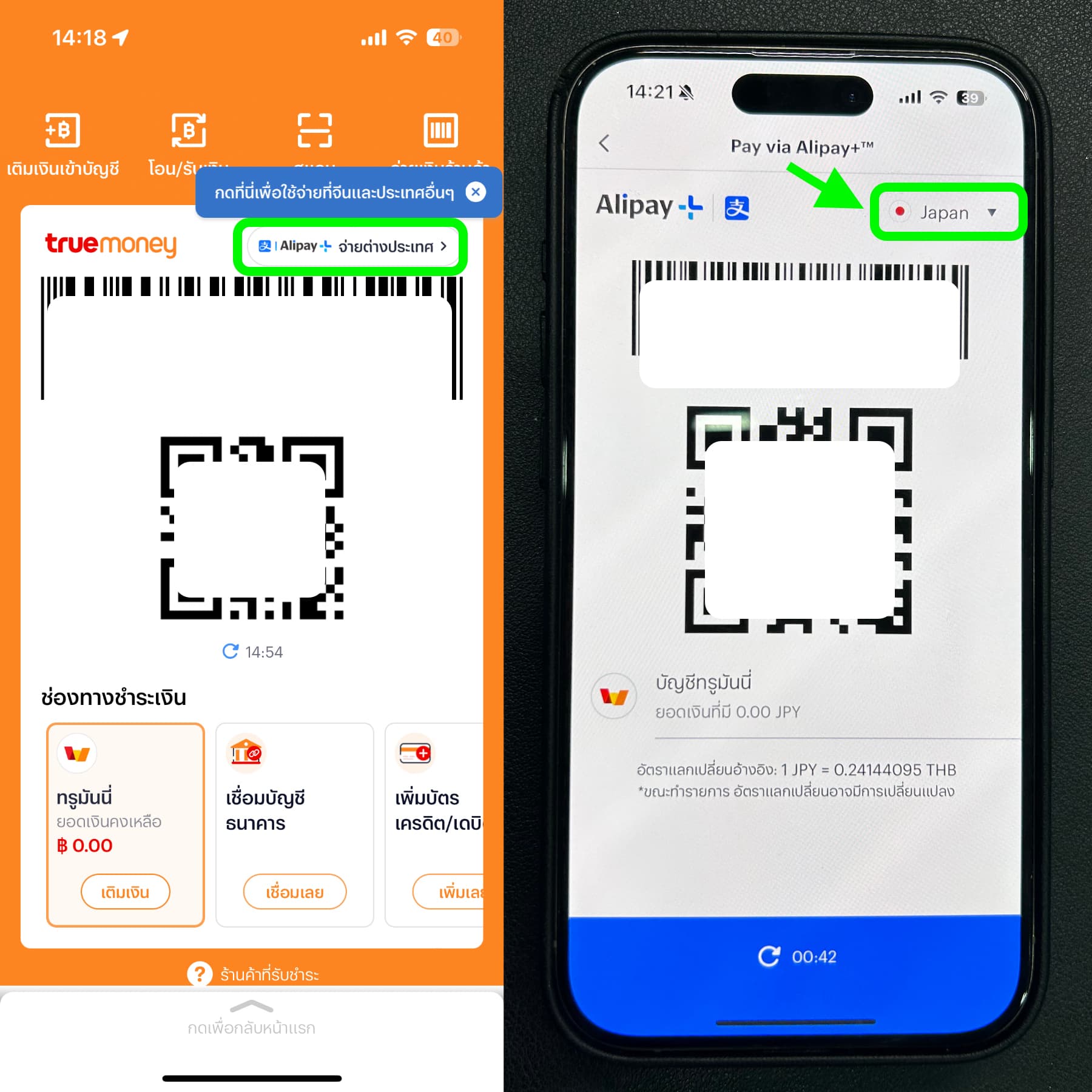 สะดวก! ไม่ต้องพกเงินสดหรือบัตรเครดิต ชำระเงินรวดเร็วด้วยการสแกน QR Code ปลอดภัยด้วยระบบ Alipay+ ใครจะไปเที่ยวญี่ปุ่น เตรียมตัวสมัครแอป truemoney ไว้ก่อน ง่าย ๆ เวลาจะให้ก็เปิดแอป truemoney แล้วสแกนจ่ายได้เลย