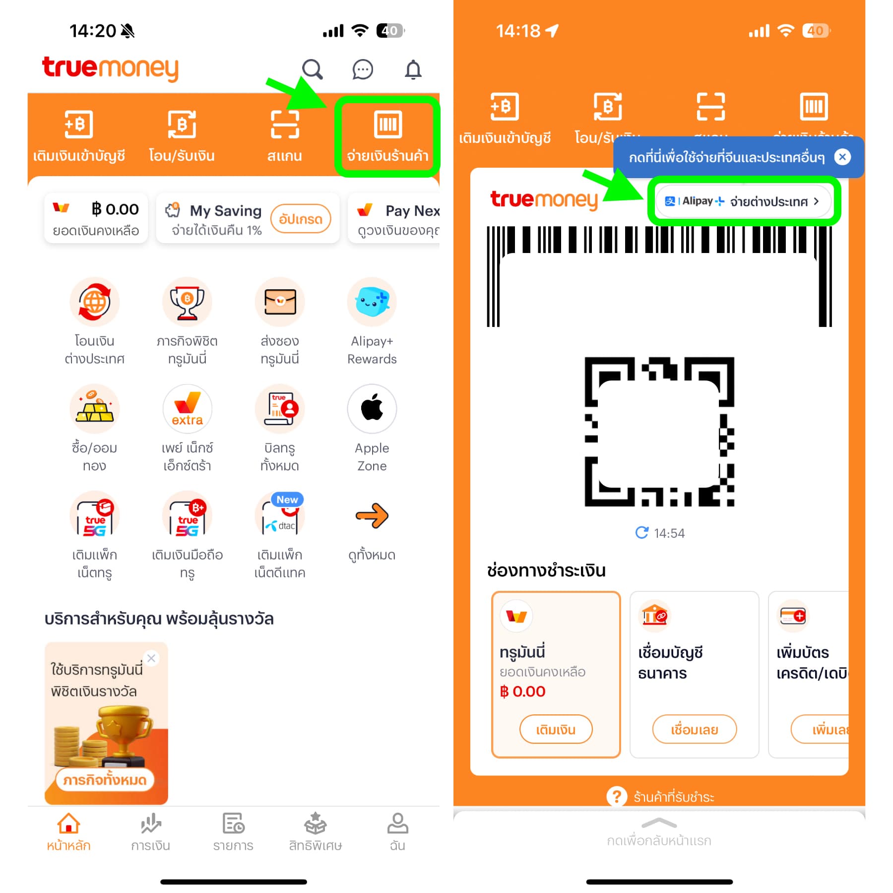 คนไทยสามารถเปิดแอป truemoney แล้วสแกนจ่ายผ่านระบบ Alipay+ ได้เลย ง่ายและสะดวก เวลาจะใช้จ่าย ทำตามวิธีดังนี้