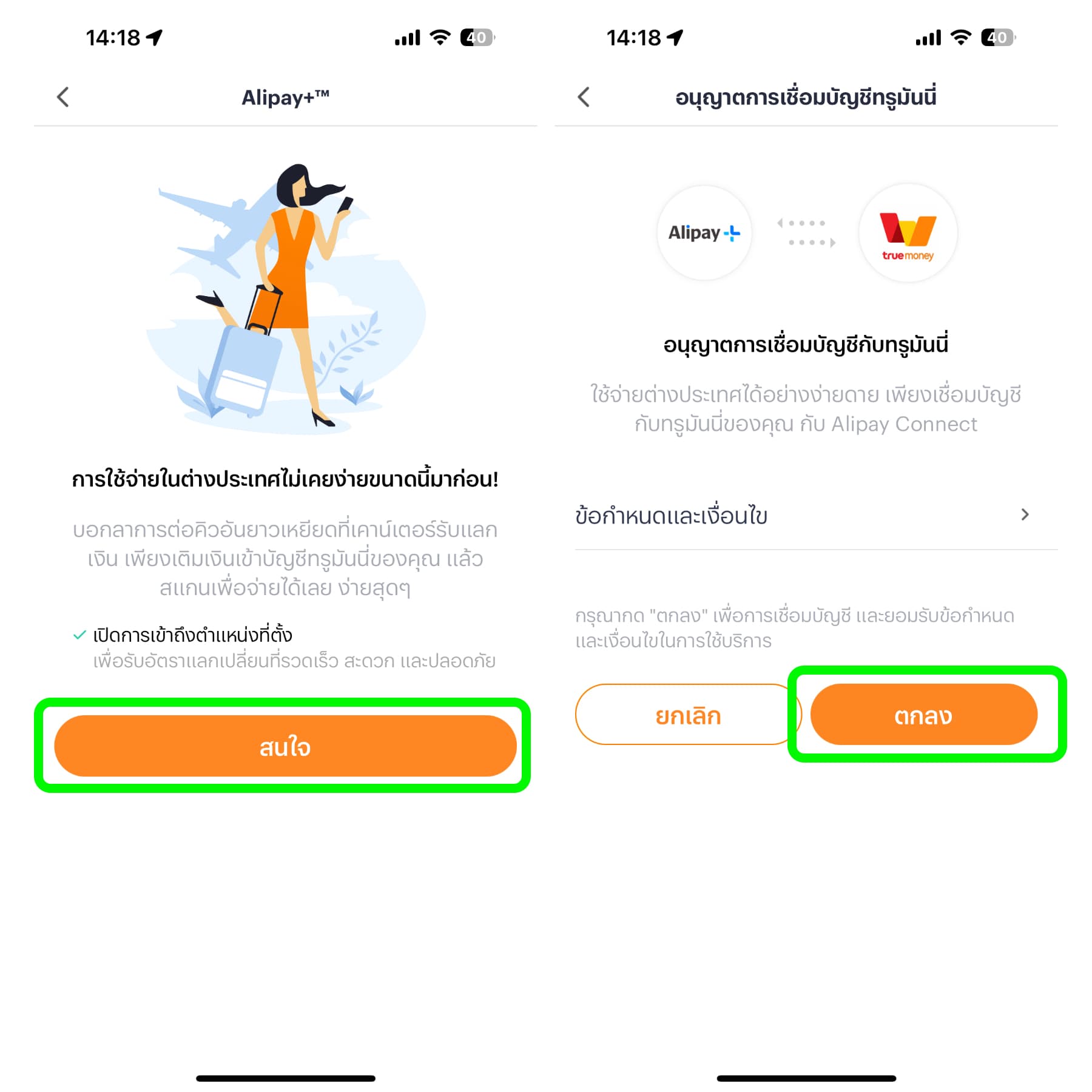 หากใช้งานครั้งแรกจะต้องยอมรับข้อกำหนดและเงื่อนไขก่อน ให้แตะ “สนใจ” และ “ตกลง” ตามลำดับ