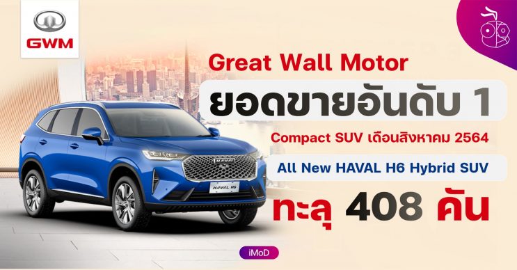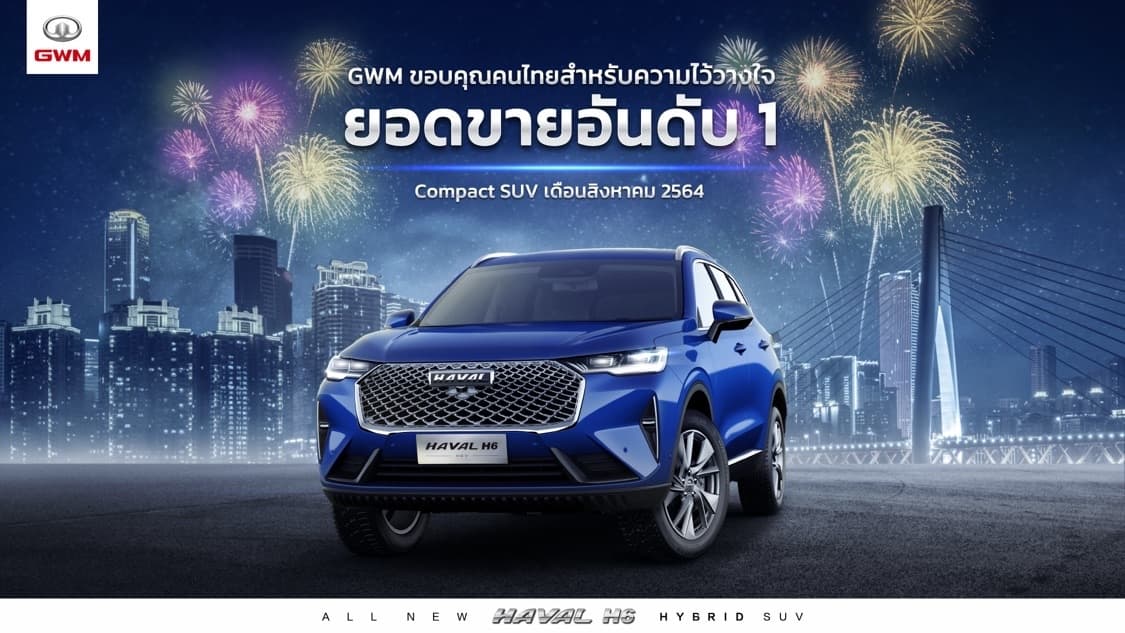 Great Wall Motor ขึ้นแท่นอันดับ 1 ครองยอดขายรถประเภท Compact SUV เดือนสิงหาคม ด้วยยอดขาย All New HAVAL H6 Hybrid SUV กว่า 408 คัน