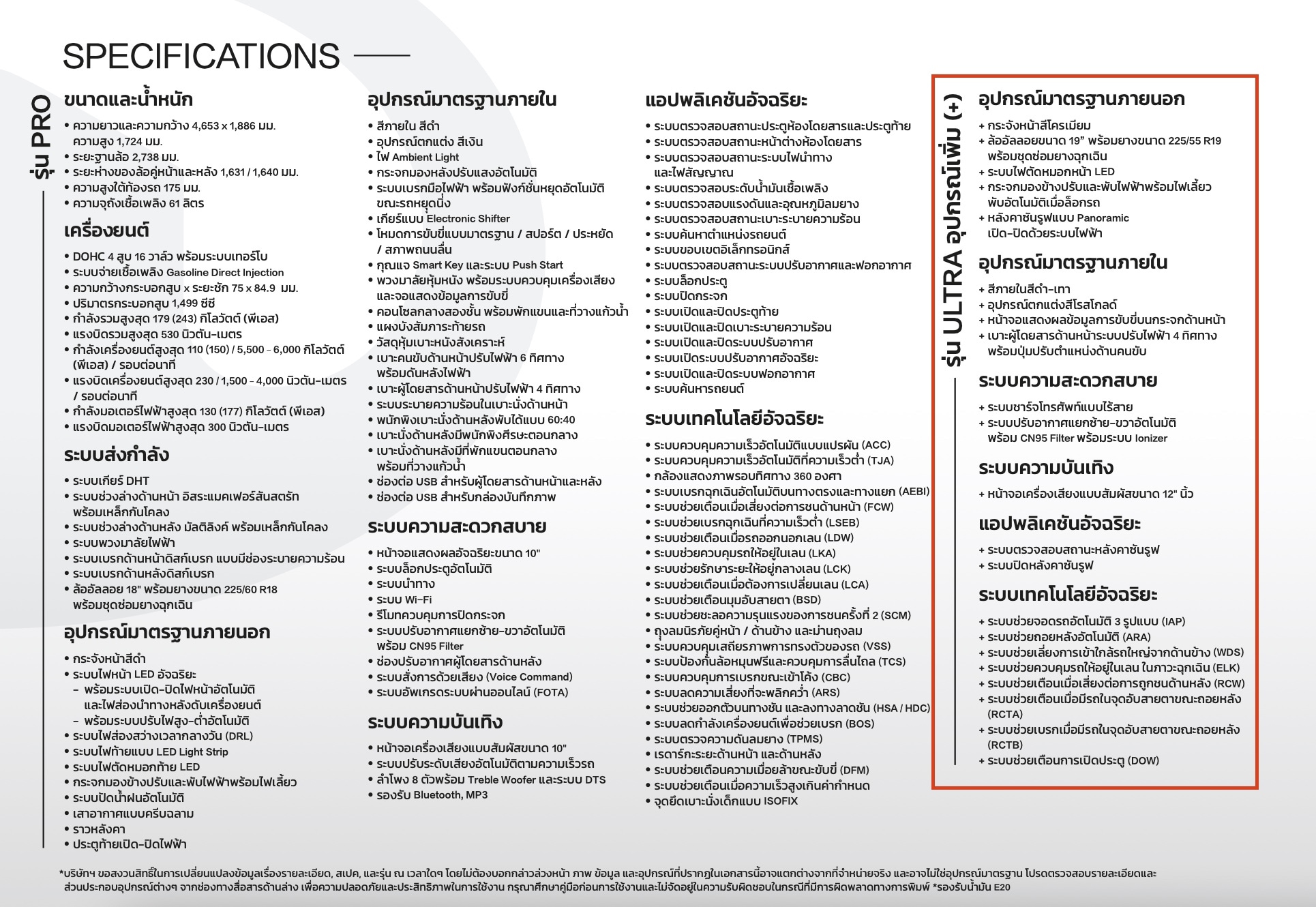รุ่น PRO คือรุ่นเริ่มต้นส่วนรุ่น ULTRA คือตัวท็อป สเปกของรุ่น ULTRA ที่จะได้มากกว่าให้ดูที่กรอบสี่เหลี่ยมสีแดง