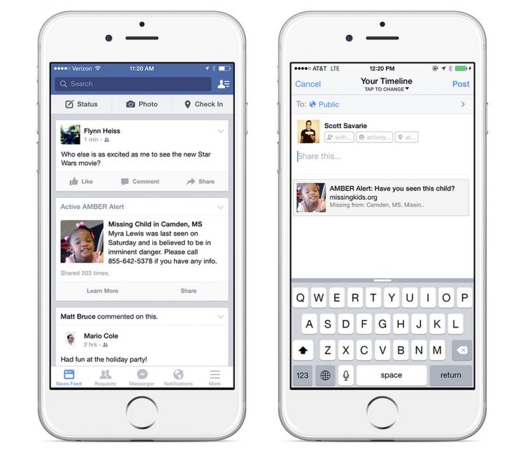 ทาง Facebook เจ้าพ่อยักษ์ใหญ่แห่งโลกสังคมออนไลน์ได้ประกาศจะเพิ่มฟีเจอร์ AMBER Alerts ในการแจ้งเตือนข้อมูลของเด็กหายให้ข้อมูลนั้นไปแสดงที่หน้า New Feeds ของผู้ใช้ โดยทาง Facebook นั้นได้ตกลงทำงานนี้ร่วมกับองค์กร National Center for Missing and Exploited Children ที่ดูแลเรื่องการติตตามเด็กหาย