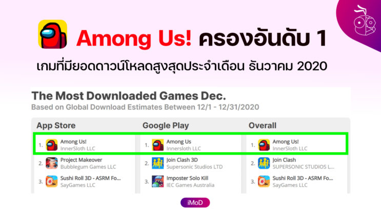 Among Us! ครองแชมป์เกมที่มียอดดาวน์โหลดสูงสุดประจำเดือนธันวาคม 2020