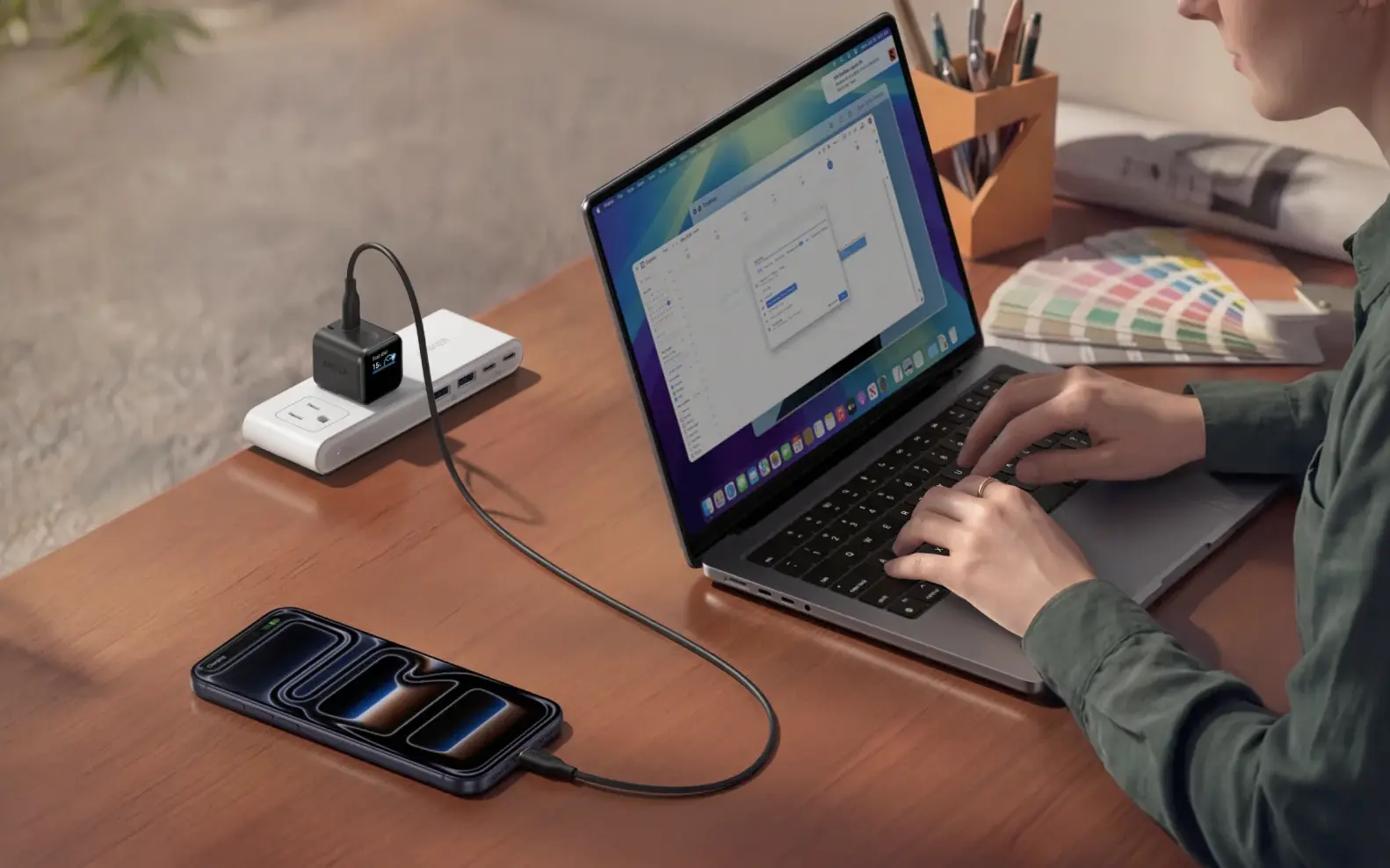 ตัวหัวชาร์จรองรับการชาร์จร่วมกับอุปกรณ์หลากหลายประเภท เช่น iPhone, Apple Watch, AirPods รวมถึงอุปกรณ์จาก Samsung โดยตัวเครื่องมีขนาดกะทัดรัด พร้อมขาปลั๊กที่พับเก็บได้ และหมุนได้ เพื่อให้ใช้งานกับปลั๊กส่วนใหญ่ได้ง่าย