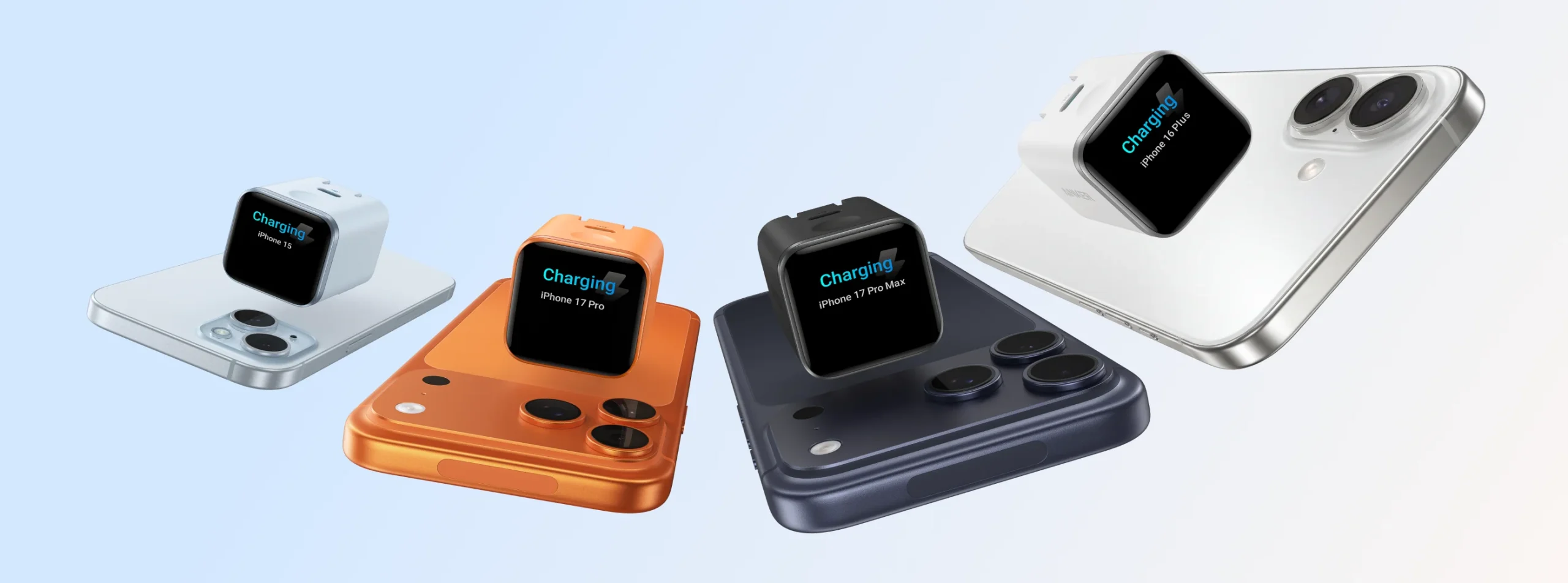 หัวชาร์จ Anker Nano ขนาด 45W มีให้เลือก 4 สี คือ Misty Blue, Variant Swatch, Black Stone และ Aurora White