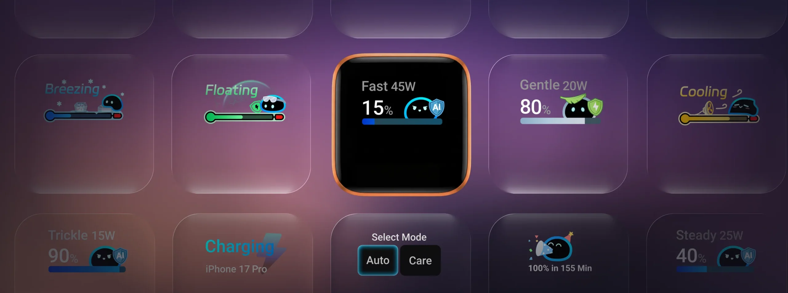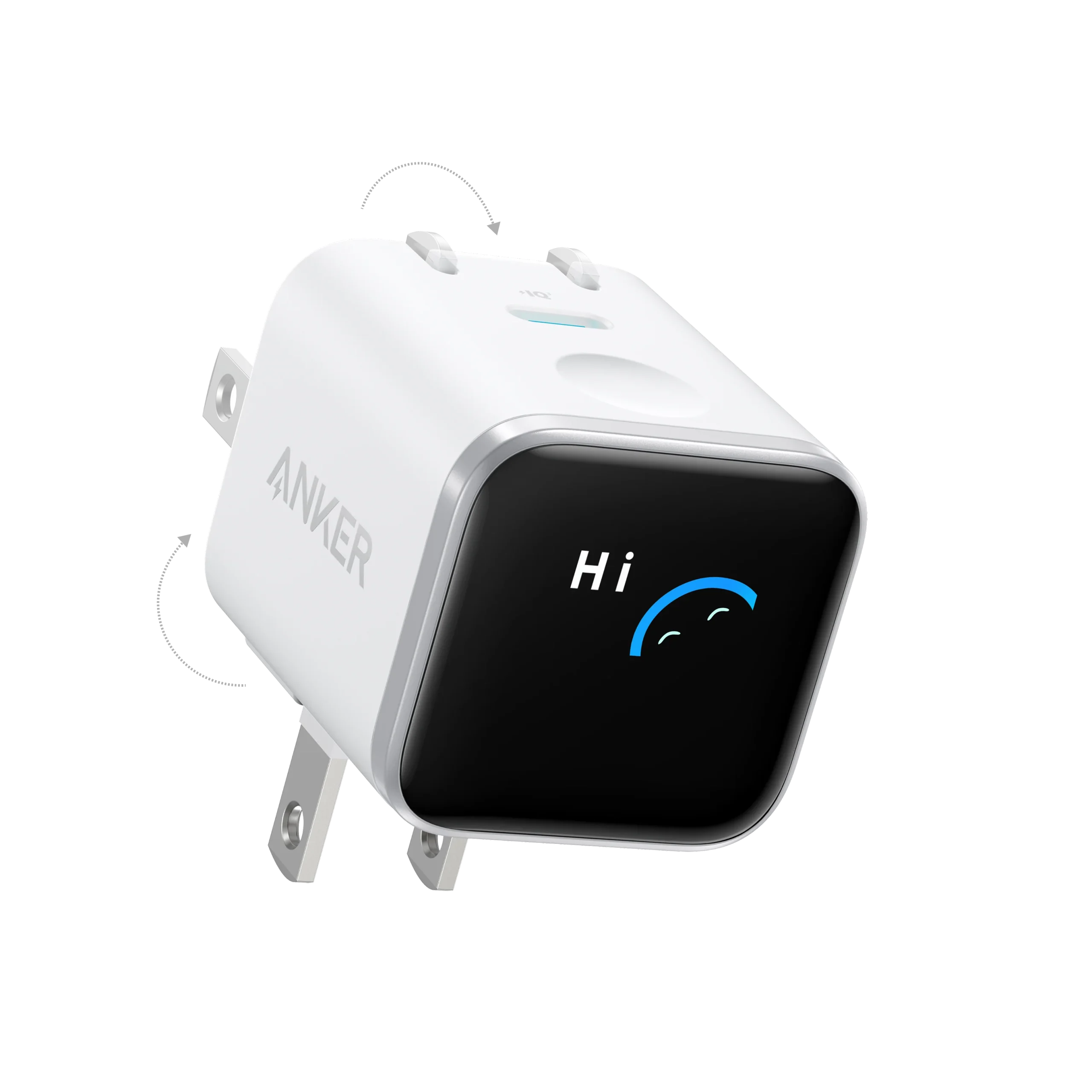 หัวชาร์จ Anker Nano ขนาด 45W รุ่นนี้มาพร้อมหน้าจอที่แสดงข้อมูล Real-time เช่น กระแสไฟ อุณหภูมิ และสถานะการชาร์จ พร้อมลูกเล่นภาพเคลื่อนไหวเพื่อให้ดูน่าใช้งาน โดย Anker ระบุว่าตัวหัวชาร์จสามารถตรวจจับอุปกรณ์ที่กำลังชาร์จและปรับค่าต่าง ๆ โดยอัตโนมัติ เพื่อยืดอายุการใช้งานแบตเตอรี่