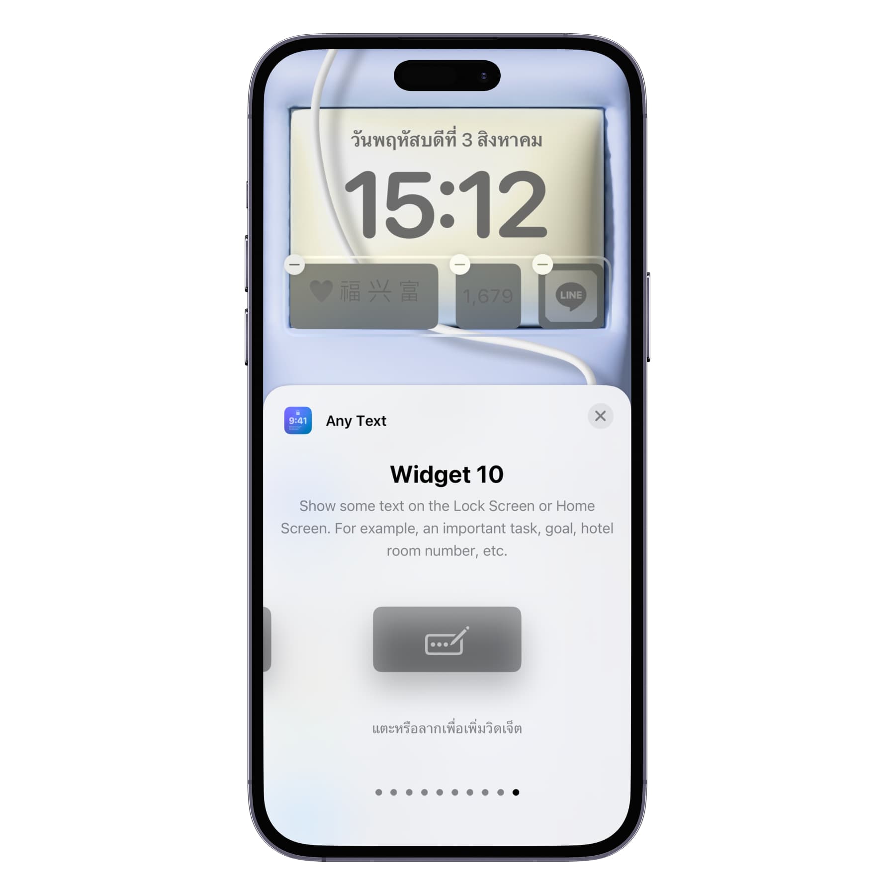 ดาวน์โหลดแอป Any Text · Lock Screen Widgets : https://apps.apple.com/ua/app/any-text-lock-screen-widgets/id1643199620
