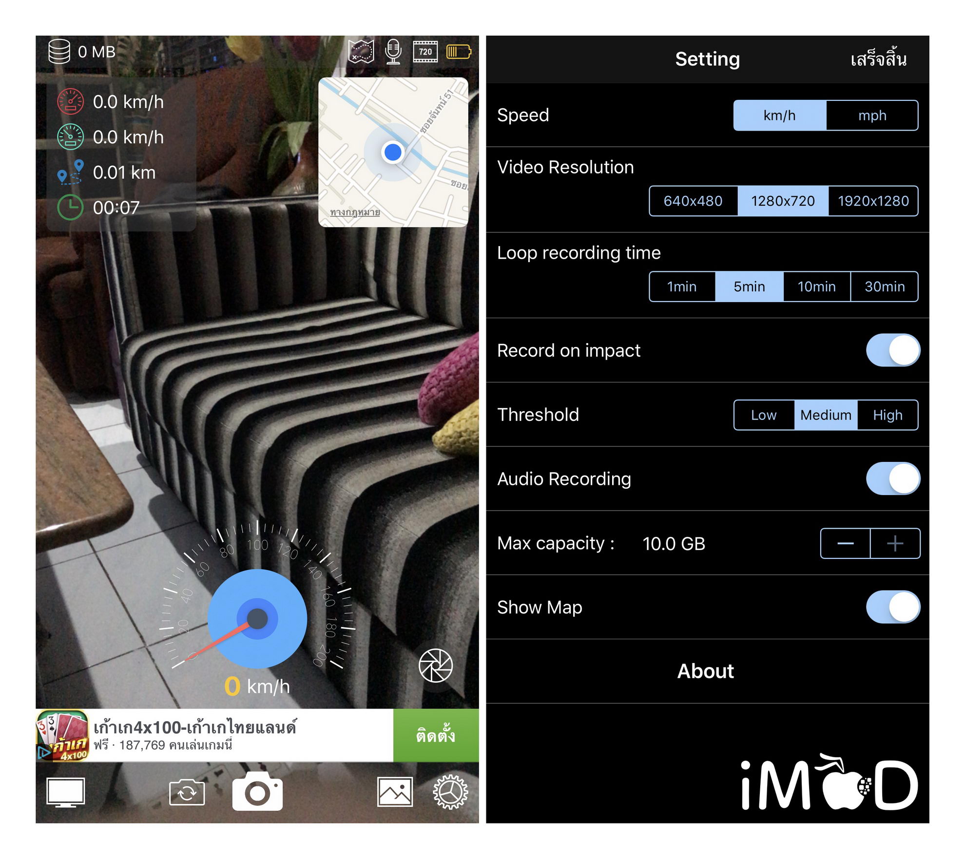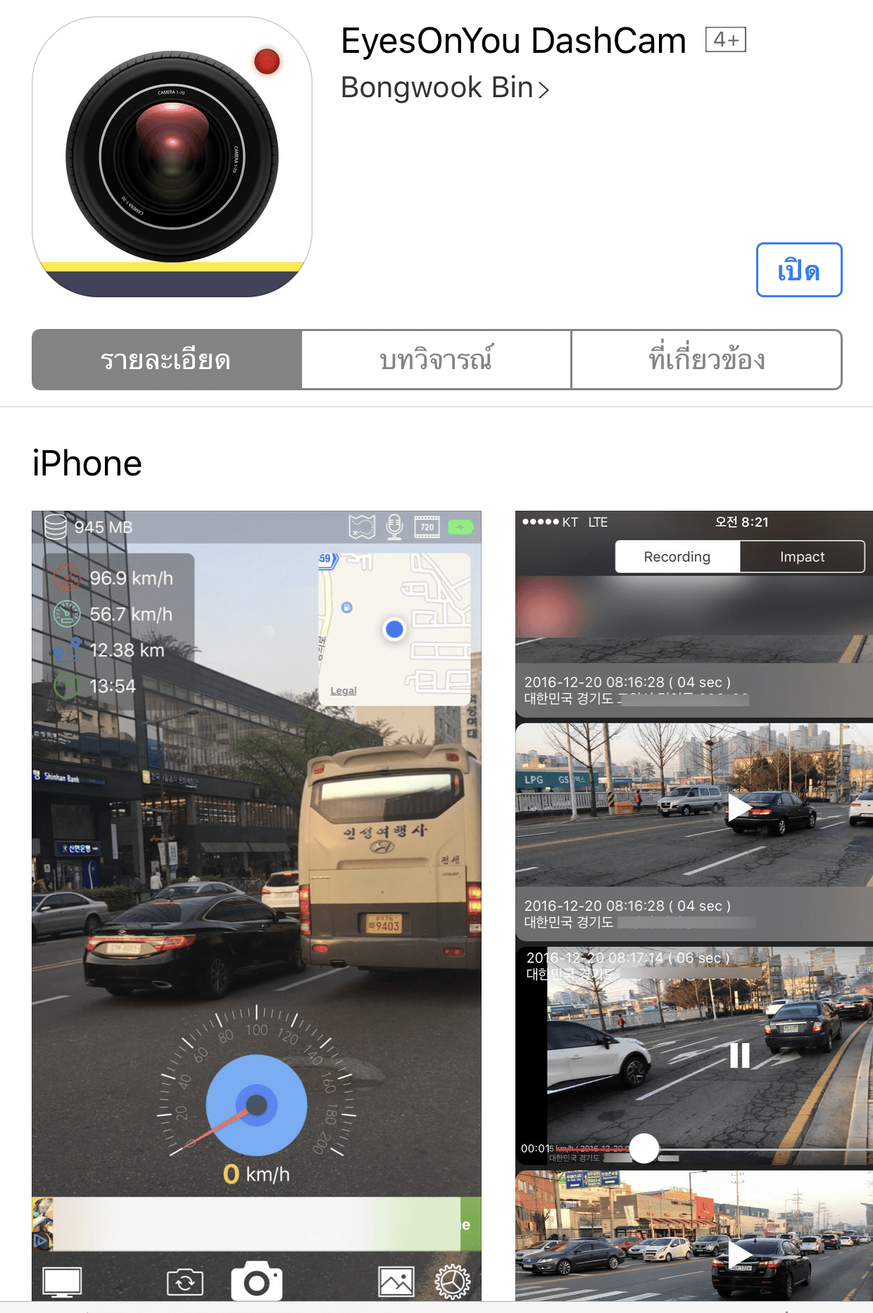 EyesOnYou DashCam ฟรี (มีโฆษณา) แอปบันทึกคลิปวิดีโอ ใช้งานในการบันทึกคลิปวิดีโอได้เหมือนกับกล้องติดรถยนต์ทั่วไป ฟังก์ชั่นครบครันพร้อมบอกแผนที่ ปัจจุบันการเดินทางนั้นสำคัญการบันทึกการเดินทางก็เช่นกัน