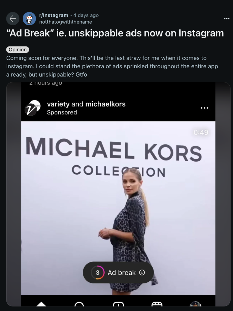 Holy moly! Meta seemingly is now forcing us to watch ads in our feeds on Instagram!