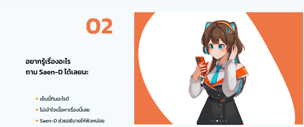- Live 2D Chat : โต้ตอบกับผู้ช่วย AI แบบเรียลไทม์ผ่านตัวละคร Saen-D ที่มีชีวิตชีวา