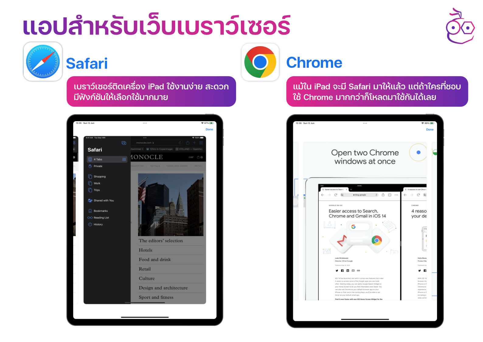 1. Safari – เบราว์เซอร์ที่มีติดเครื่อง iPad มาอยู่แล้ว ใช้งานง่าย สะดวก มีฟังก์ชันให้เลือกใช้มากมายอีกด้วย