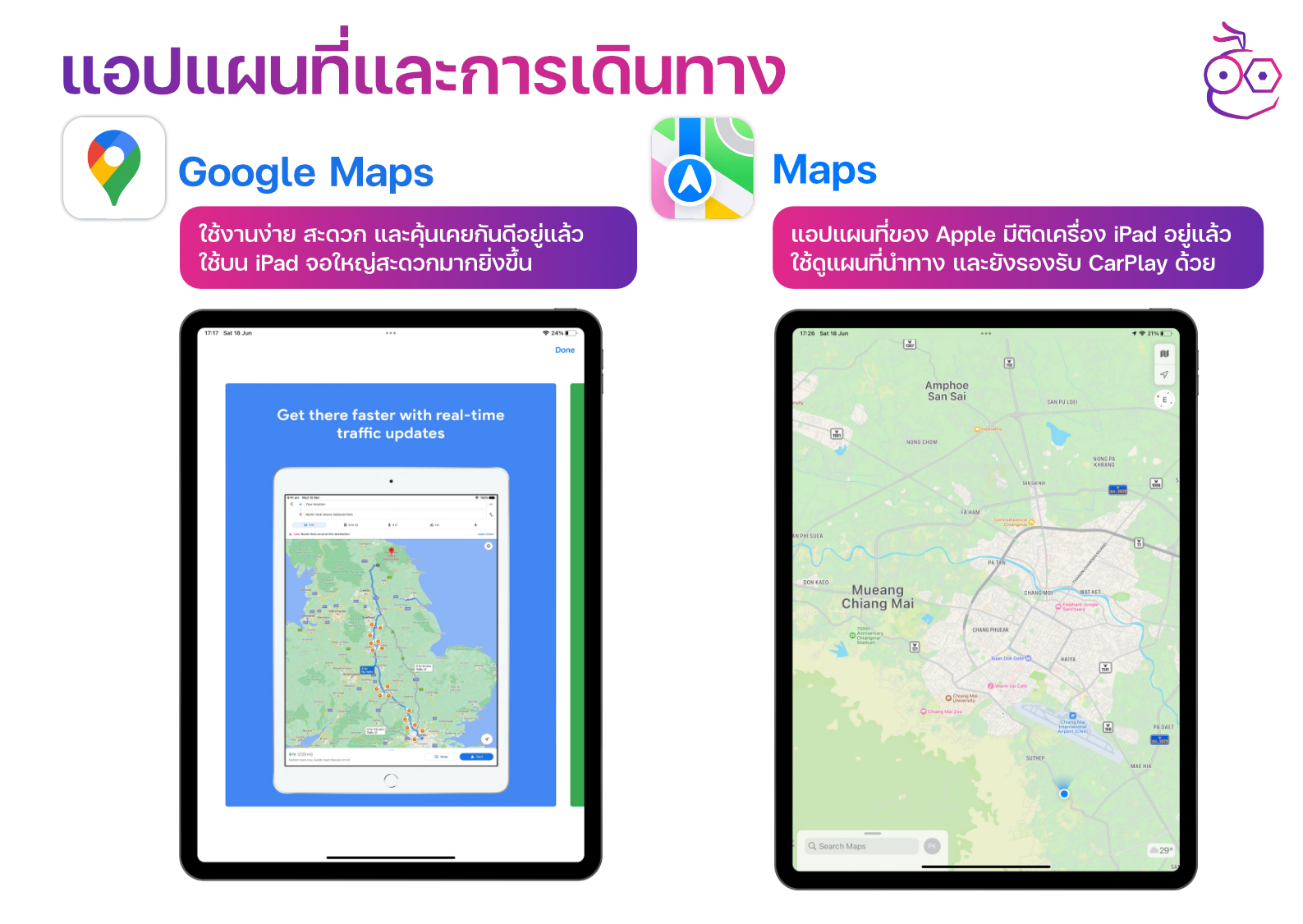 3. Maps – เป็นแอปแผนที่นำทางของ Apple ที่มีติดเครื่อง iPad มาอยู่แล้วใช้ดูแผนที่นำทาง และยังรองรับ CarPlay ด้วย