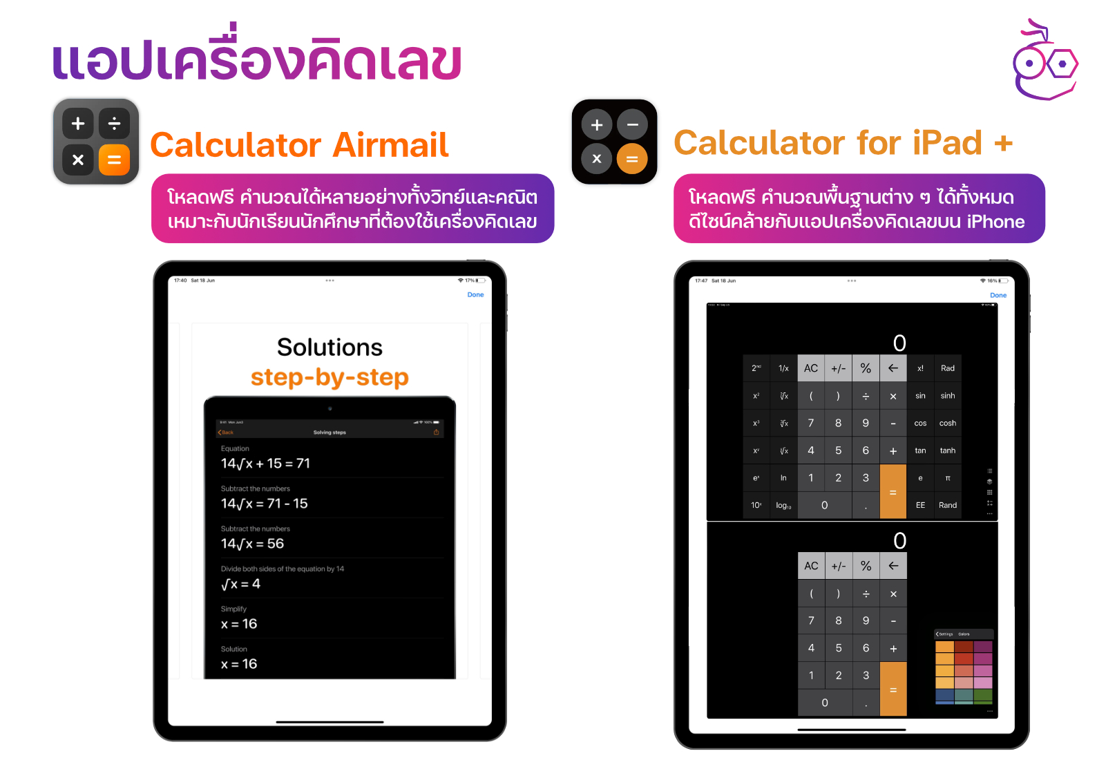 2. Calculator for iPad + – เป็นแอปเครื่องคิดเลขสำหรับ iPad โดยเฉพาะ โหลดฟรี คำนวณพื้นฐานต่าง ๆ ได้ทั้งหมด ตัวดีไซน์การออกแบบคล้าย ๆ กับแอปเครื่องคิดเลขบน iPhone จึงทำให้รู้สึกว่าใช้งานง่าย และที่สำคัญคือโฆษณาน้อย ตอบโจทย์สายคิดคำนวณแน่นอน