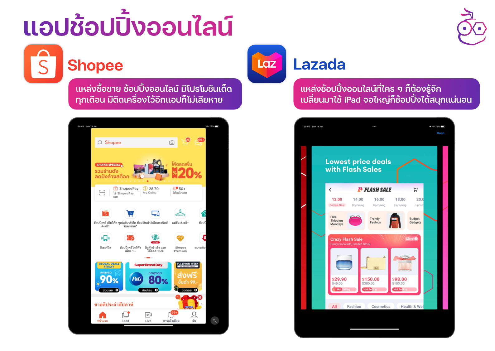 2. Lazada – แหล่งช้อปปิ้งออนไลน์ที่ใคร ๆ ก็ต้องรู้จัก เปลี่ยนมาใช้ iPad จอใหญ่ก็ช้อปปิ้งได้สนุกแน่นอน