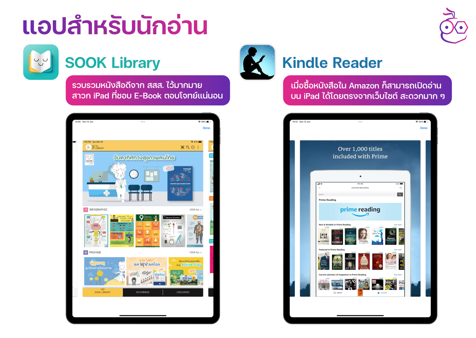 1. SOOK Library – เป็นแอปที่รวบรวมหนังสือดีมีประโยชน์จาก สสส. ไว้มากมาย เช่น เคล็ดลับการดูแลสุขภาพ การเลิกบุรี่ ความสุขในครอบครัว และหนังสือเสริมสร้างความสุขความบันเทิง สาวก iPad ที่ชอบอ่าน E-Book ตอบโจทย์แน่นอน