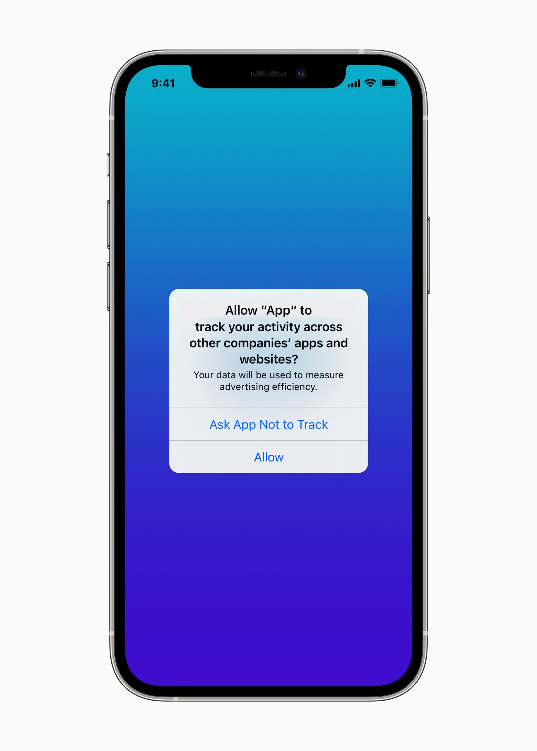 หากแอปไหนที่ต้องการข้อมูลส่วนตัวของผู้ใช้ก็จะมีหน้าต่างเด้งขึ้นมาเพื่อให้ผู้ใช้เลือกว่าจะอนุญาตให้แอปติดตามข้อมูลของผู้ใช้หรือไม่
