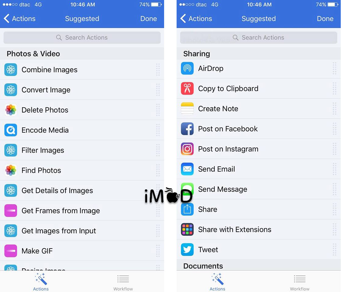 โดยแอป Workflow มี Action หรือฟังก์ชันต่างๆ ให้เลือกมากกว่า 200 แบบ รองรับทั้ง iPhone, iPod, iPad และ Apple Watch อีกด้วย
