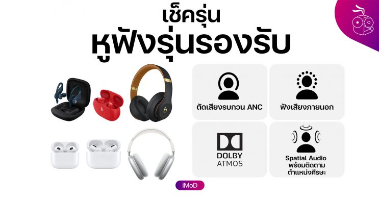 Apple เปิดตัวฟีเจอร์เสียงใหม่ ๆ อย่างเช่นการตัดเสียงรบกวน ฟังเสียงภายนอก Spatial Audio Dolby Atmos และอื่น ๆ มาชมสรุปข้อมูลว่าหูฟัง Apple, Beats รุ่นใดรองรับฟีเจอร์เหล่านั้นบ้าง