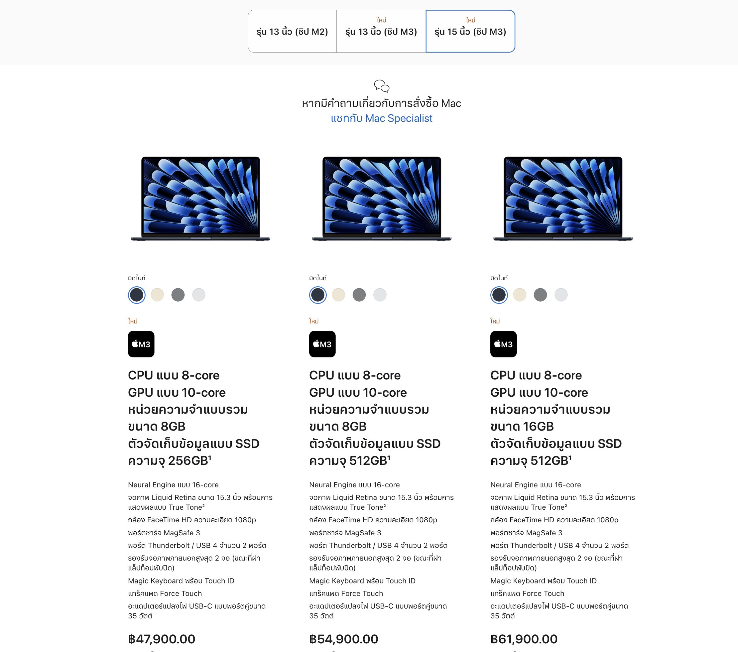 Apple เปิดตัว MacBook Air ชิป M3 รุ่น 13″ และ 15″ ราคาเริ่มต้น 39,900 บาท ชมไฮไลท์เด่นที่นี่