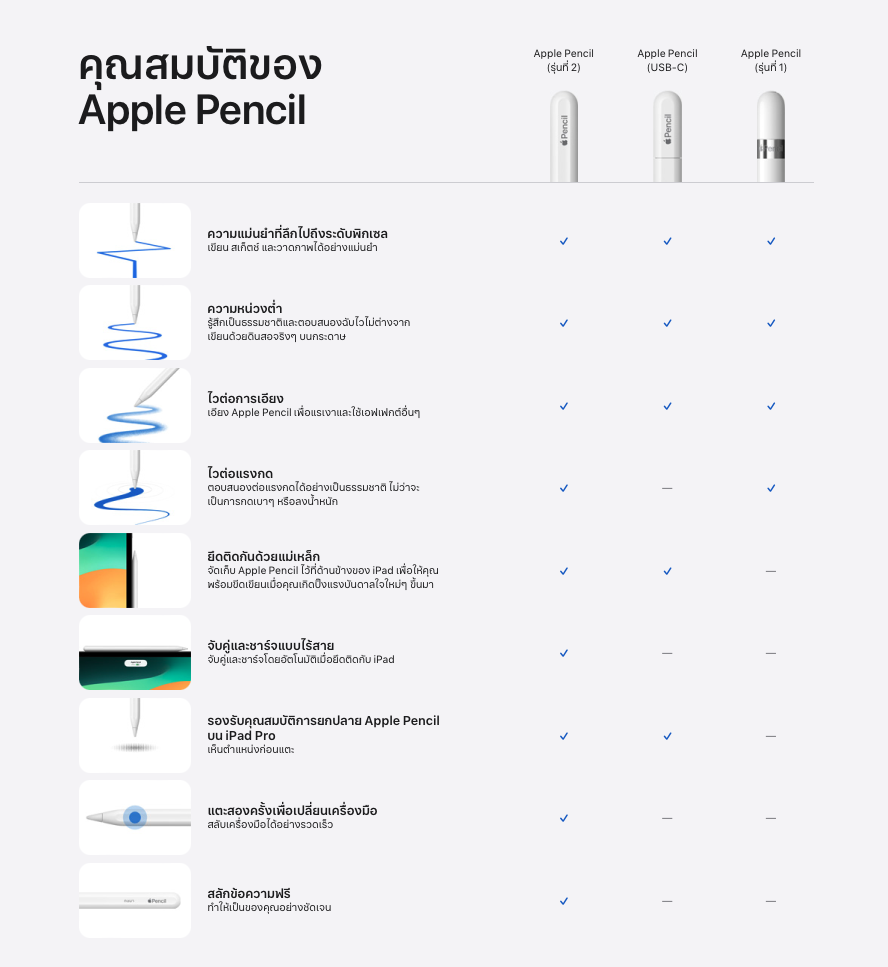 เปรียบเทียบกับ Apple Pencil รุ่นอื่น