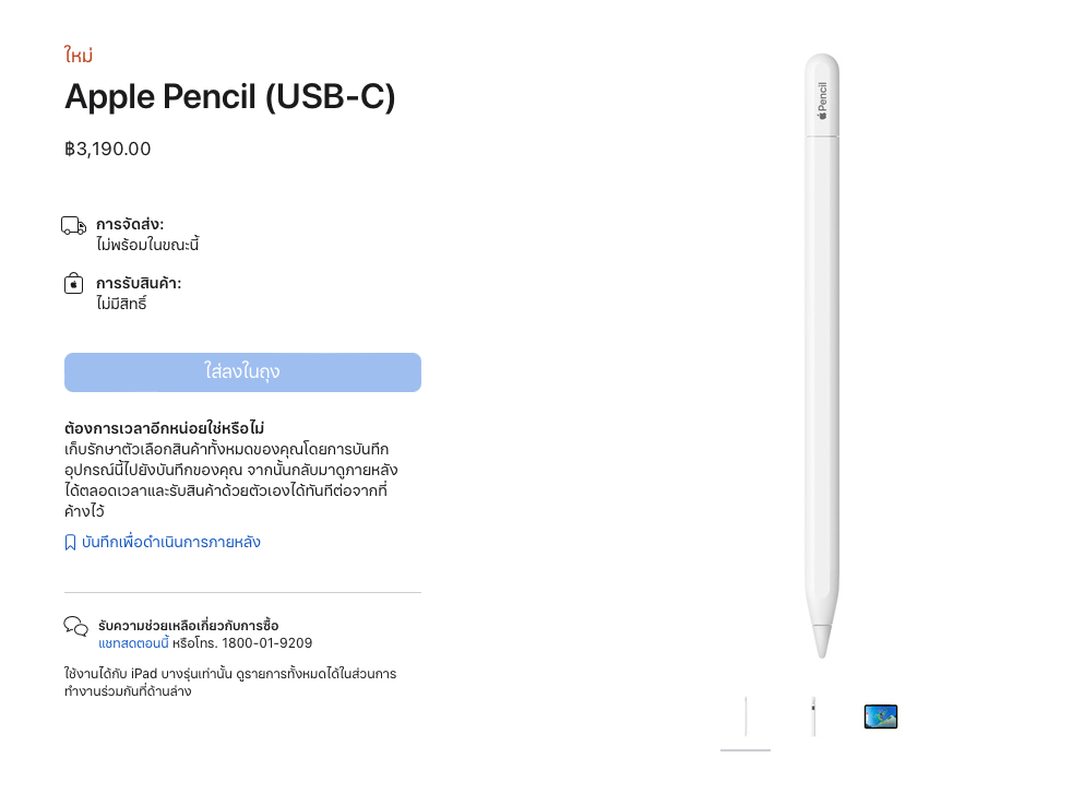ลิงก์สินค้า : https://www.apple.com/th/shop/product/MUWA3ZA/A/apple-pencil-usb-c