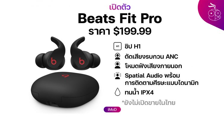 1 พ.ย. 2021, Beats ในเครือ Apple ได้เปิดตัวหูฟังรุ่นใหม่ Beats Fit Pro มีฟีเจอร์ตัดเสียงรบกวน ANC, รองรับ Spatial Audio ราคา $199 ยังไม่ขายในไทย