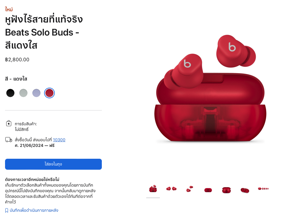 30 เม.ย. 2024, Apple เปิดตัว Beats Solo Buds ใหม่ สเปคน่าสนใจ มาพร้อมดีไซน์กะทัดรัด ราคา 2,800 บาท, เปิดให้สั่งซื้อแล้ววันที่ 18 มิ.ย. 2024
